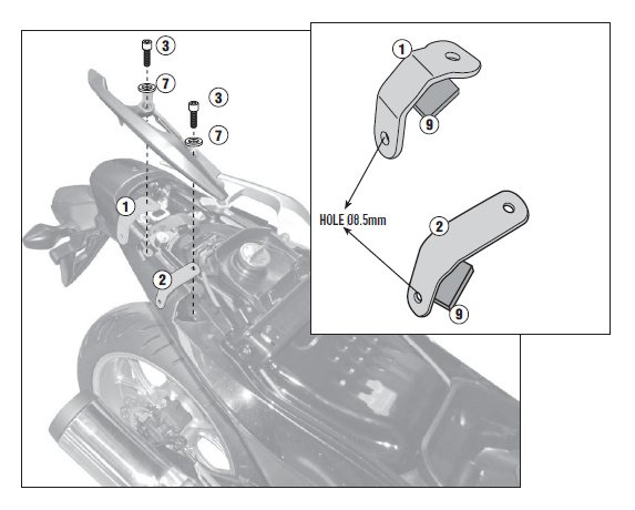 Montážní sada pro samostatnou montáž nosiče bočních kufrů PLX 1127 = bez použití horního nosiče kufru 1127 FZ. DOPRODEJ!.