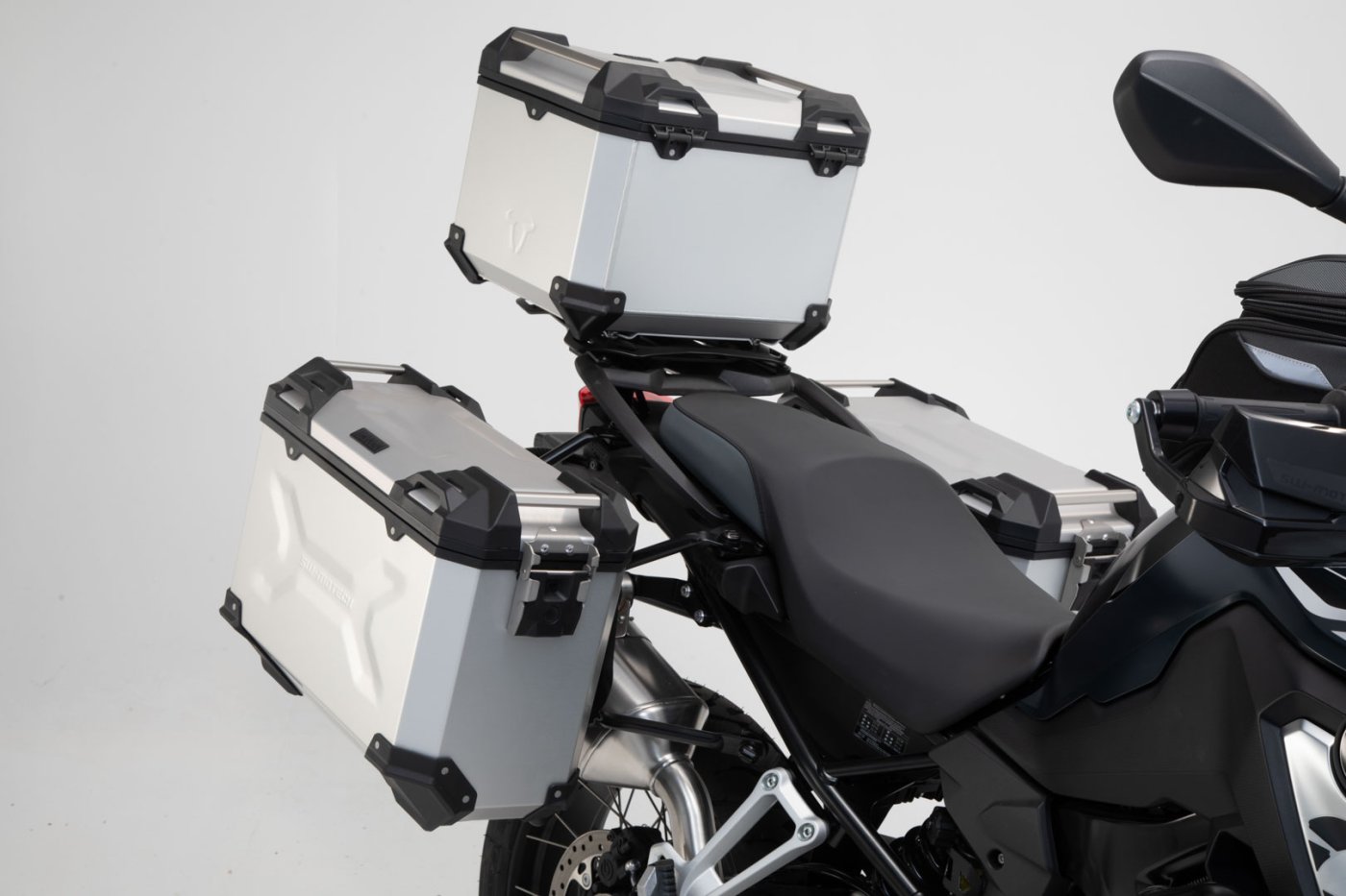 Kufrový systém TRAX ADV je určený pro uvedený motocykl a využívá hliníkové kufry řady TRAX ADV.