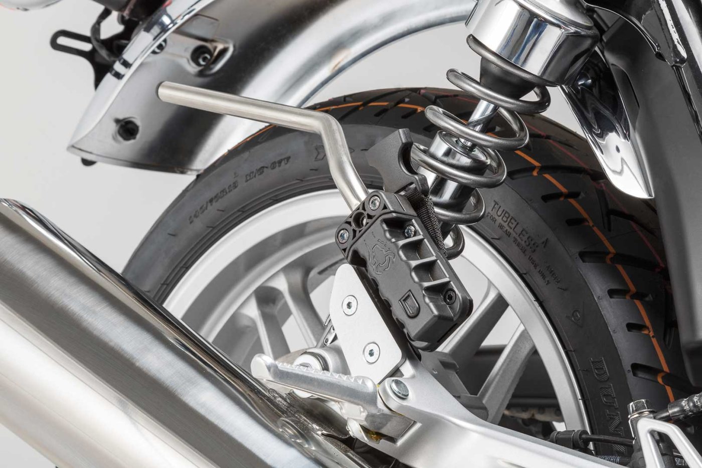 - Odnímatelné podpěrné rameno zabraňuje kontaktu se zadní pneumatikou