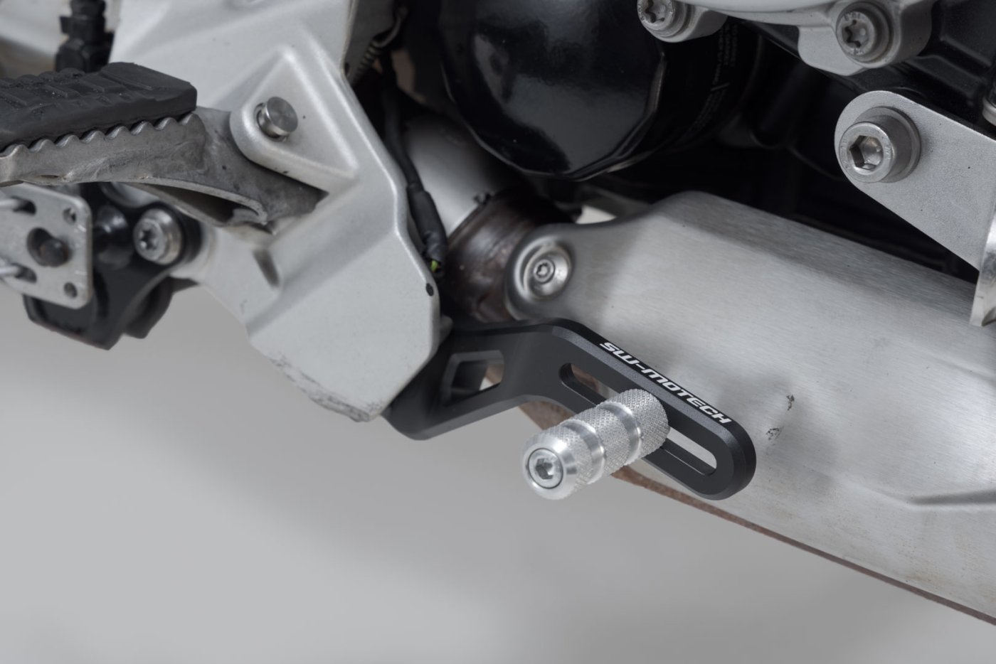 Nastavitelný brzdový pedál vyrobený z vysoce kvalitního frézovaného hliníku s povrchovou úpravou HART-COAT® umožňuje optimalizovanou manipulaci a ovládání brzdy. Délku brzdového pedálu SW-MOTECH lze nastavit o 5 cm, takže vyhovuje každé noze a každému stylu jízdy. Dezén běhounu zvyšuje přilnavost a poskytuje lepší stabilitu pro sportovní jízdu a delší výlety. S dezénem Adventure (prodává se samostatně) můžete zlepšit ovládání brzdového pedálu, zejména při jízdě v terénu ve stoje.