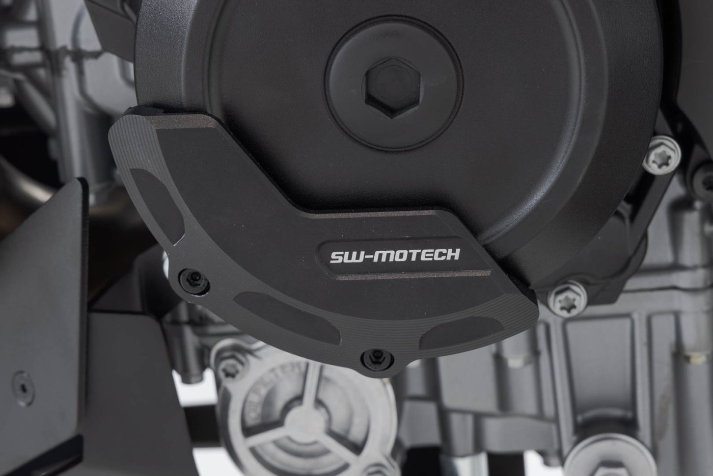 Sada chráničů pro kryty alternátoru a spojky, frézovaná z vysoce pevné hliníkové slitiny. Elegantní design poskytuje exponovaným částem extra ochranu před padajícími kameny, pádem nebo kontaktem se zemí.