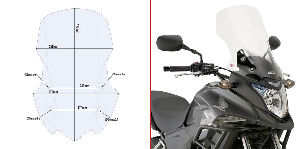 Detailní popis D1121ST plexi čiré Honda CB 500 X (13-18), vxš490x350 mm, o 190 mm vyšší než originál