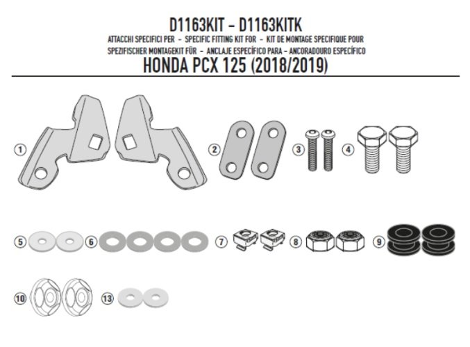 D1163KIT montážní sada Honda PCX 125 (18-20) k plexi 1163DT, 1129DT, 1129D