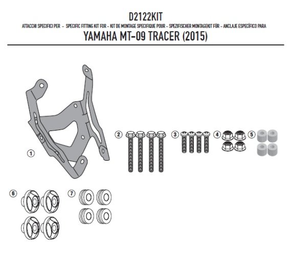 Detailní popis D2122KIT montážní sada Yamaha MT-09 Tracer 850 (15-17) pro plexi 2122DT