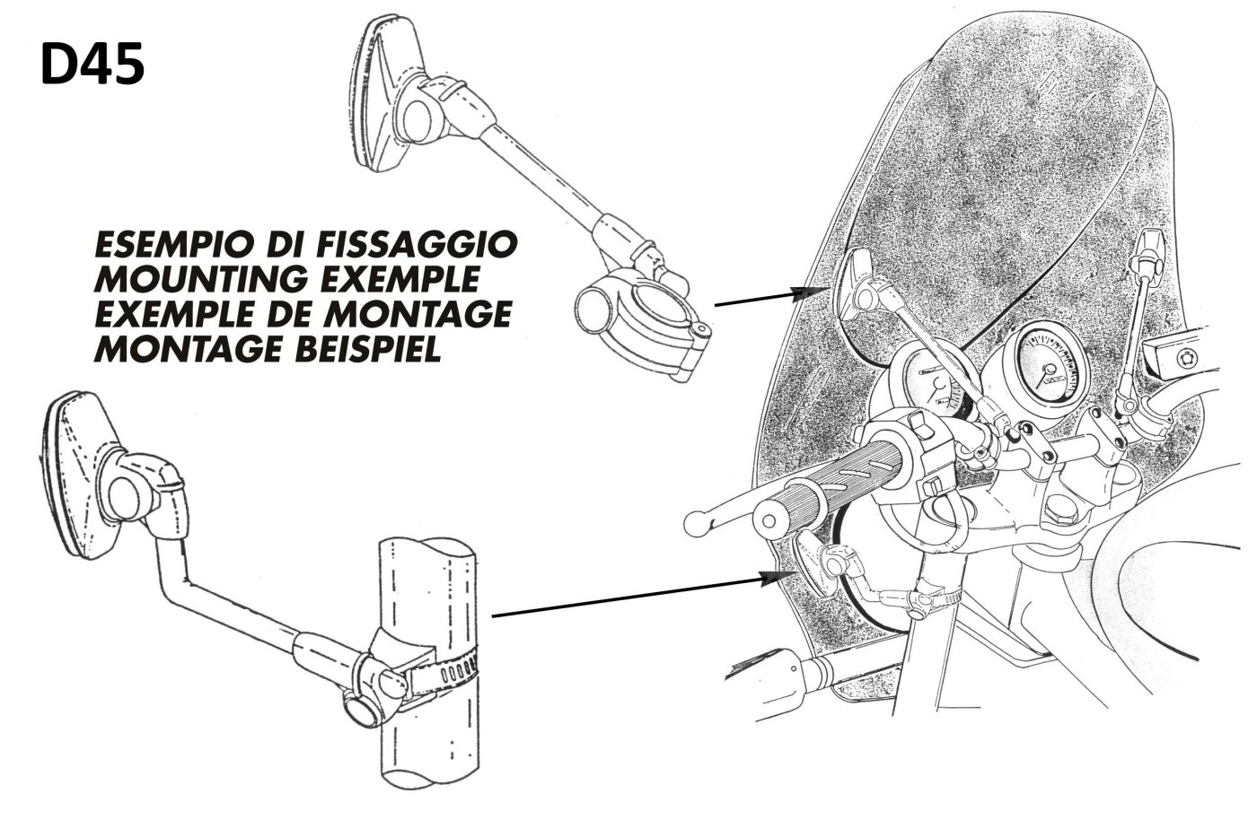 Montážní sada pro čtyřděrová plexi - 2 úchyty na řídítka, 2 úchyty na ramena přední vidlice. Lze jím uchytit čtyřděrová plexi A31, A34.