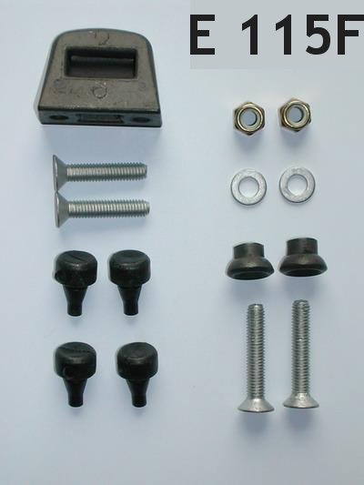 Detailní popis E115F upínací sada kufru 3-dílná - pro jeden kufr (2 čepy, protikus zámku,4 šrouby, gumové dorazy)