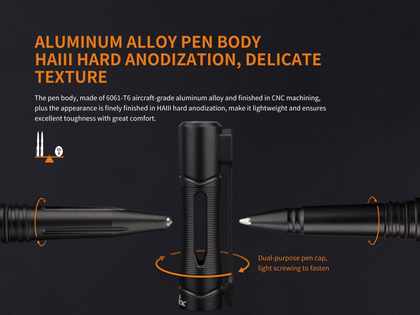 - Ke svítilně je přiloženo taktické pero T5, šňůrka na zápěstí, pouzdro na opasek, náhradní o-kroužek, nabíjecí USB kabel, akumulátor Fenix Li-ion 21700 5000 mAh.