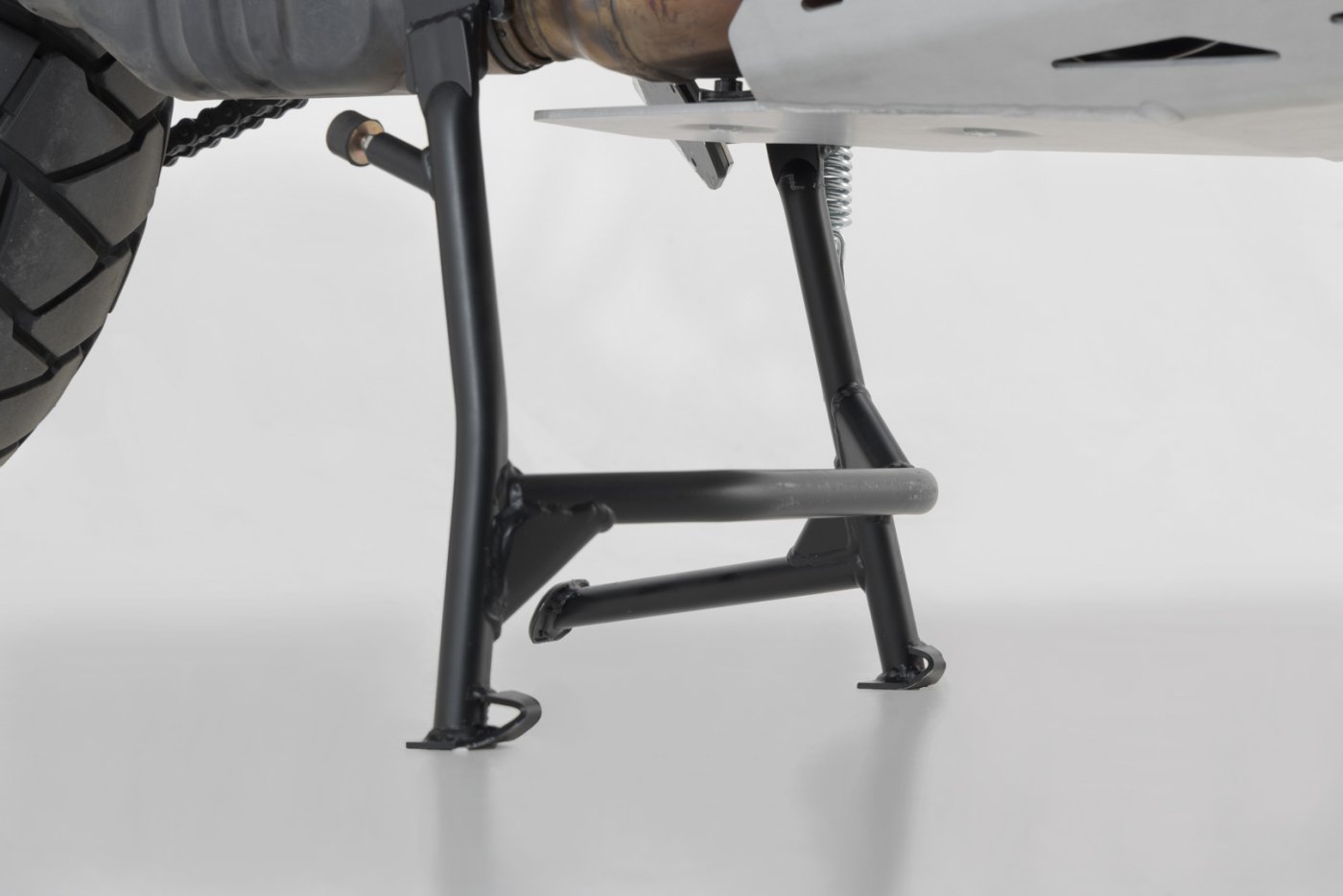 Nezničitelná, ale lehká trubková ocelová konstrukce poskytuje tvému motocyklu Harley-Davidson Pan America nejlepší úhel a světlou výšku, usnadňuje zvedání a poskytuje stabilitu - ať už je to během údržby nebo na silnici. Obvykle již není nutné kupovat další montážní stojan. Ideální pro zimní měsíce: hlavní stojan odlehčuje pneumatikám při dlouhém stání. Díky nové technologii lze středový stojan namontovat bez námahy: pružina je volně připevněna a utažena pouze jedním šroubem.