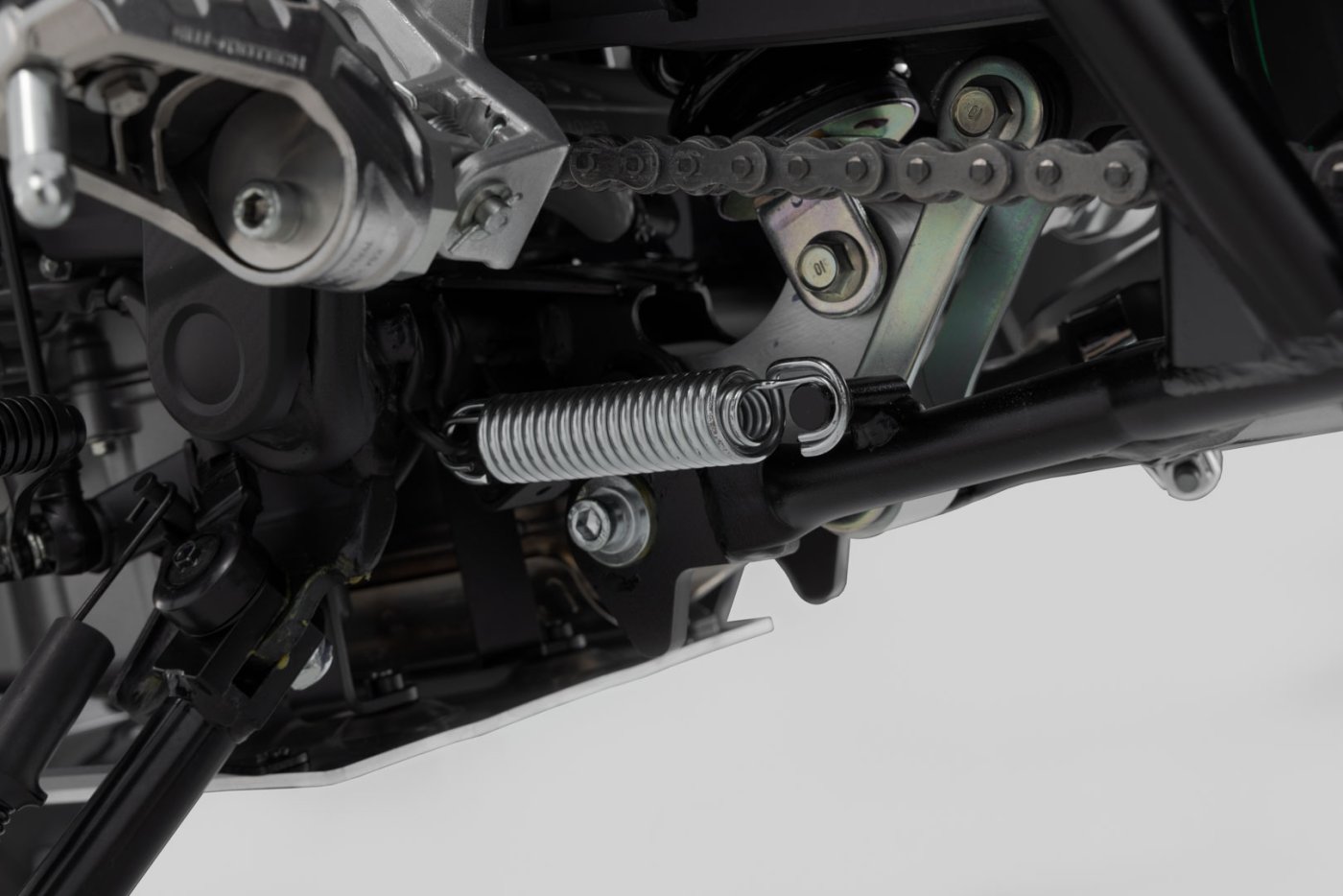 Nezničitelná, ale lehká konstrukce z ocelových trubek nabízí nejlepší úhel a světlou výšku, usnadňuje zvedání a poskytuje stabilitu - ať už je to během údržby nebo na silnici. Ve většině případů již nebudete muset kupovat další stojan na kyvné rameno. Během dlouhých odstávek v zimních měsících vám středový stojan pomůže odlehčit pneumatiky.