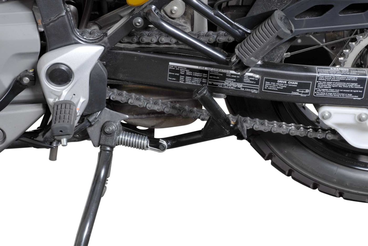 Nezničitelná, ale lehká konstrukce z ocelových trubek nabízí nejlepší úhel a světlou výšku, usnadňuje zvedání a poskytuje stabilitu - ať už je to během údržby nebo na silnici. Ve většině případů již nebudete muset kupovat další stojan na kyvné rameno. Během dlouhých odstávek v zimních měsících vám středový stojan pomůže odlehčit pneumatiky.