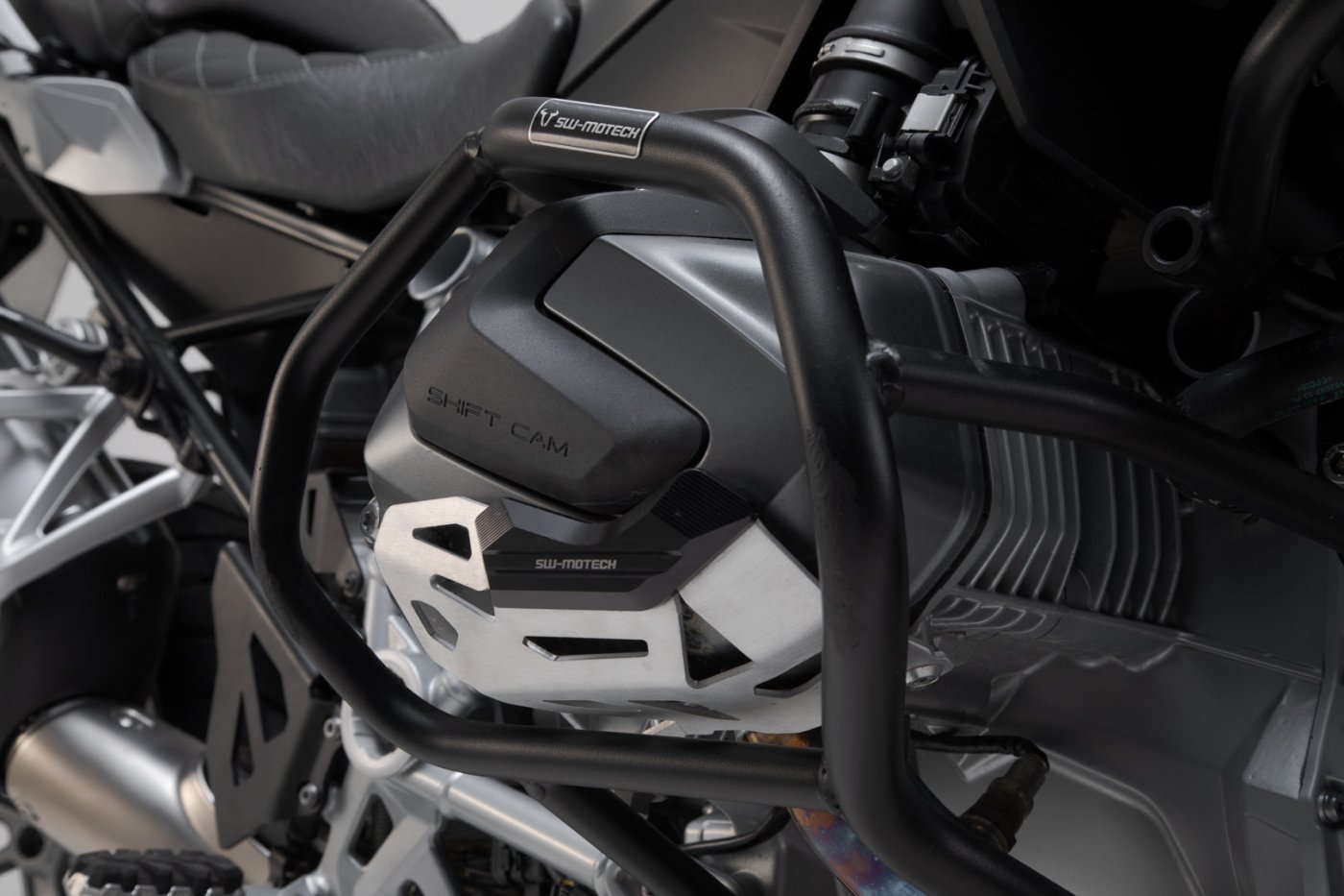 Tyto speciálně navržené chrániče dokonale zapadají do designu BMW a chrání kryt boxeru před poškozením kameny a pády. Pomocí pouhých tří šroubů na každé straně lze chránič snadno namontovat na stávající upevňovací body. Kryt válce se skládá z laserem řezaného hliníkového montážního držáku a CNC frézované hliníkové posuvné podložky. Na vnitřní straně má také gumový tlumič.