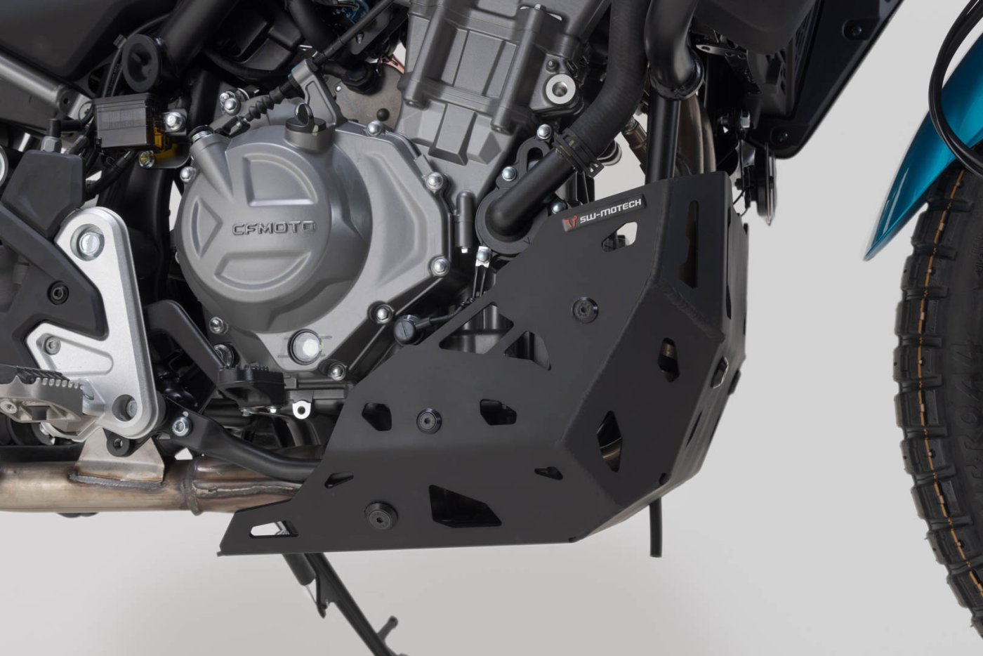 Tento kryt motoru vyrobený ze 4 milimetrů silného hliníkového plechu byl vyvinut speciálně pro CFMoto 450MT.