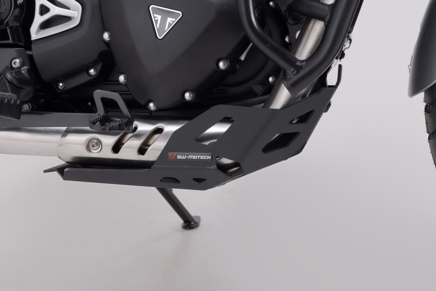 Robustní kryt motoru nabízí dodatečnou ochranu motoru a plastové nádrže modelu Triumph Scrambler 400 X. 4 mm silný hliníkový plech vyrobený z vysoce kvalitní hliníkové slitiny dokáže ochránit motor před odletujícími kamínky a poškrábáním, pokud se motocykl dostane do kontaktu se zemí. Nabízí tak zvýšenou bezpečnost a individuální vzhled.