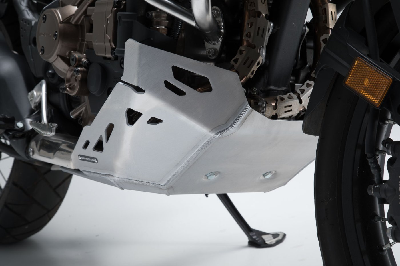 Extrémně silný kryt motoru má 5 mm hliníkovou spodní konstrukci a nabízí kompletní ochranu bloku motoru. Kryt motoru je postaven z přesně vyrobených úchytů, které zapadají přímo do stávajícího držáku rámu a vytvářejí robustní spojení, které rozděluje síly nejen do montážních bodů, ale také do ocelového rámu motocyklů v případě kontaktu se zemí.