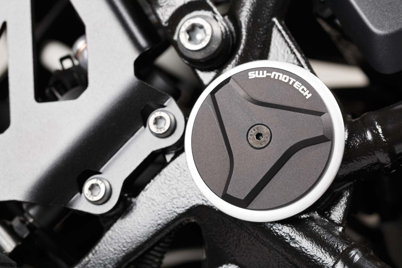 Rámové uzávěry pro zakrytí originálních šroubů na kyvné vidlici.