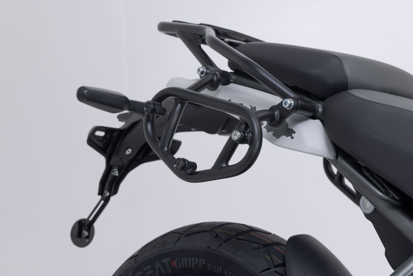 Systém bočních tašek zahrnuje odpovídající boční nosiče SLC pro Royal Enfield Himalayan 450 a také boční tašku LC1 a LC2 Legend Gear.