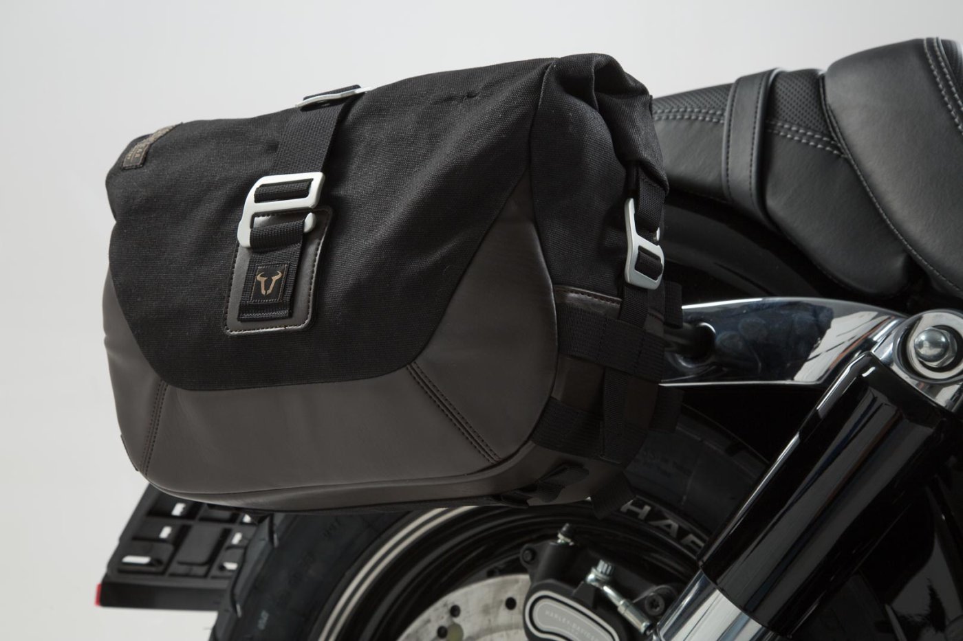 Hraje dobře s ocelí: legenda Gear LC1 straně vaku je vybaven pohodlnou rychlouzávěrem pro SLC ocelové boční nosič. Kombinace křídový plátna plachtění materiál s robustní Napalon syntetická kůže podporuje vintage design často linie zavazadlem. Cyklista SLC boční nosič umožňuje snadnou a bezpečnou montáž na originální uchycení ke kolu. SLC boční nosič pro Harley-Davidson Dyna Fat Bob FXDF (08-), perfektně přizpůsobí konstrukci jízdního kola. Sada obsahuje dvě legendy Gear LC1 postranní tašky, SLC boční nosič a montážní materiál.