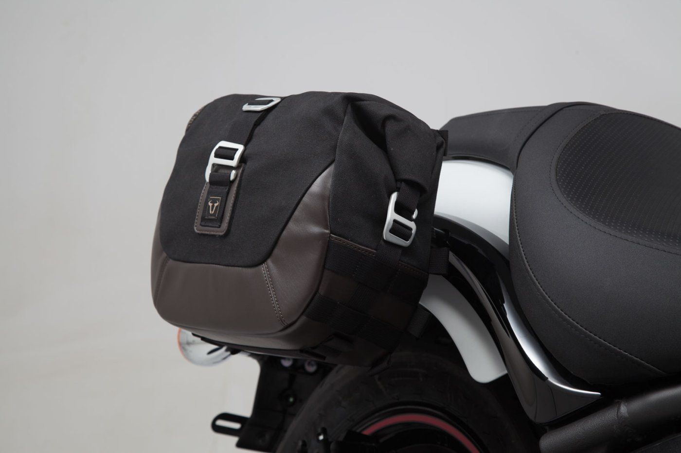 Hraje dobře s ocelí: legenda Gear LC2 straně vaku je vybaven pohodlnou rychlouzávěrem pro SLC ocelové boční nosič. Kombinace křídový plátna plachtění materiál s robustní Napalon syntetická kůže podporuje vintage design často linie zavazadlem. Cyklista SLC boční nosič umožňuje snadnou a bezpečnou montáž na originální uchycení ke kolu. SLC boční nosič pro Kawasaki Vulcan 900 Custom a Vulcan 900 Classic, perfektně přizpůsobí konstrukci jízdního kola. Sada obsahuje dvě legendy Gear LC2 postranní tašky, SLC boční nosič a montážní materiál.