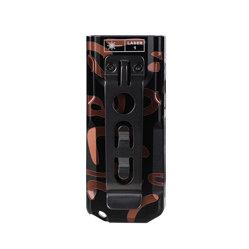 Červený laser se zapíná a vypíná podržením červeného tlačítka na boku svítilny zhruba 0,5 vteřiny.