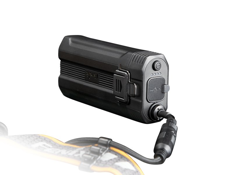 - Součástí balení čelovka, dva akumulátory Fenix 21700 5000 mAh, nerezový nosič pro upevnění bateriového pouzdra na opasek, 3 plastové úchytky pro připnutí kabelu k hlavovému popruhu, 4 držáky k uchycení hlavového popruhu na helmu, prodlužovací kabel k bateriovému pouzdru, nabíjecí USB-C kabel a náhradní o kroužek.