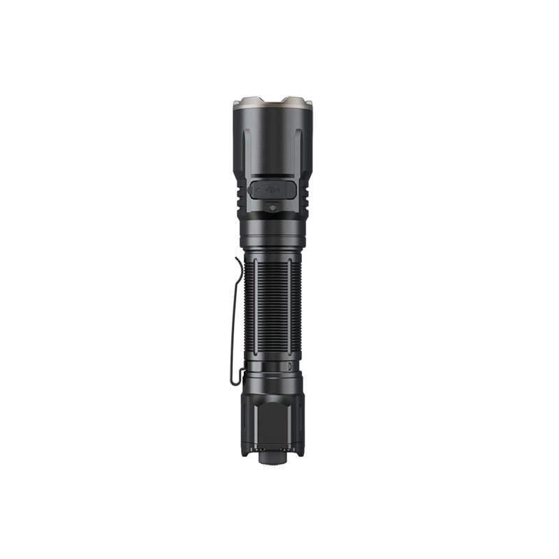 Fenix TK25R je špičková taktická svítilna, která nabízí vysoký výkon a univerzální využití díky kombinaci hlavního a bočního reflektoru. Hlavní reflektor s prémiovou LED Cree XHP50.3 poskytuje světelný tok až 3600 lumenů s dosvitem 350 metrů. Unikátní vlastností tohoto modelu je integrované boční světlo, které disponuje difuzním bílým, červeným a ultrafialovým světlem (365 nm) o výkonu až 700 mW, které umožní například rychlou kontrolu pravosti dokladů a bankovek, vytvrzování lepidel či kontrolu úniku kapalin. Dále je boční světlo vybaveno funkcí červeno-modrého blikání, což ocení zejména ozbrojené složky. Napájení zajišťuje Li-ion akumulátor typu 21700 (Fenix ARB-L21-5000 V2.0) s kapacitou 5000 mAh, který se nabíjí přes moderní USB-C konektor přímo na těle svítilny. Tělo je vyrobeno z odolné hliníkové slitiny A6061-T6 s tvrdou anodizací a je plně vodotěsné a prachotěsné dle standardu IP68.