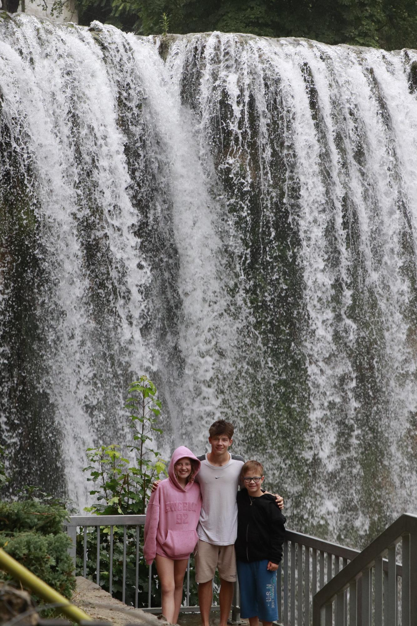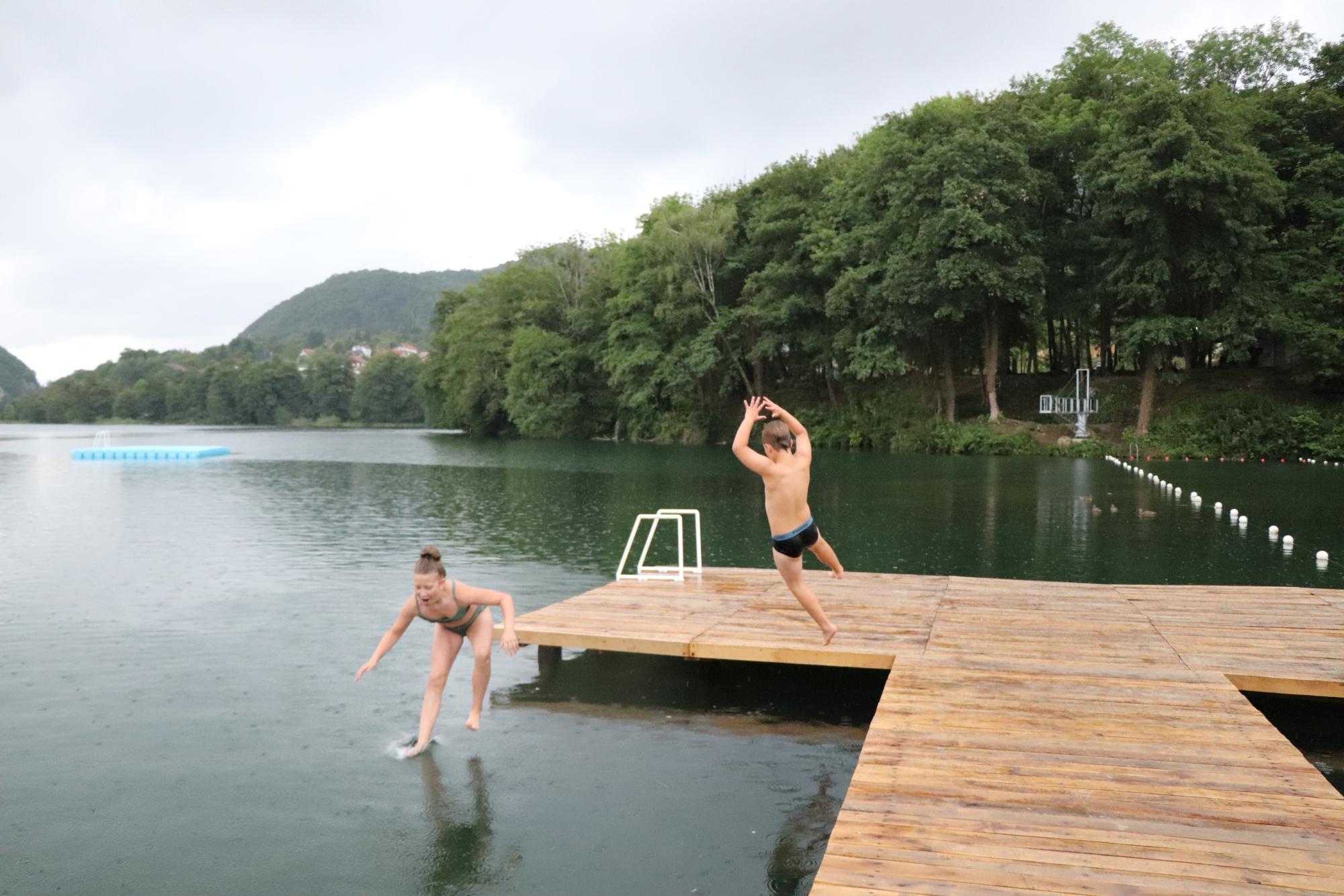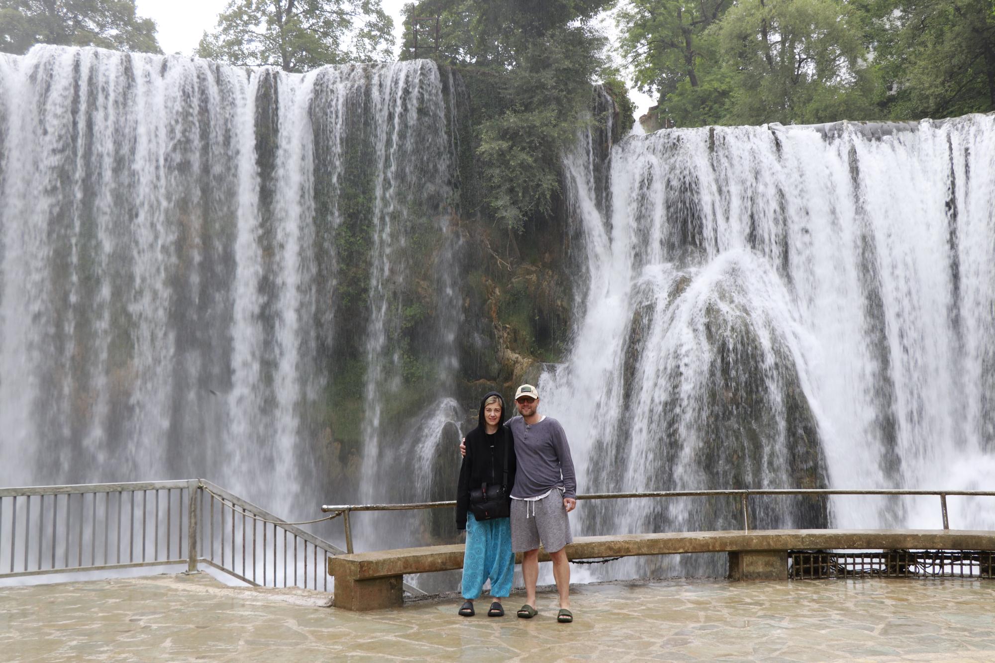 2. den. Přijíždíme do Jajcí a začíná lehce pršet. Ze silnice letmo zahlédneme vodopády, dávám blinkr a odpočujeme k nim. Chvíli hledáme místo na zaparkování, ale velký problém to není. Protože jsme ale celý den moc nejedli, ještě než dojdeme k vodopádům, dáváme jídlo. První seznámení s bosenksou kuchyní (tedy krom mě) je jasná volba - Pljeskavica. A u všech má úspěch. Za lehkého deště pak jdeme obdivotvat vodopády. Déšť nám nevadí, alespoň není všude tolik turistů. Je to úžasný pohled, který si vychutnáváme z více míst. Děláme spoustu fotek a nasáváme atmosféru a energii. Poté se jedeme ubytovat do osvědčeného kempu nad městem nahoru proti porudu řeky Plivy. Kemp je poloprázdný, a tak si vybíráme pěkné místo, kde půjde snadno vedle auta postavit stan nebo ulehnout pod širákem. Plán je totiž takový, že žena, Eliška a Filip spí v autě, já a Denis venku. Počasí nám ale lehze změní plány, to ale až za chvíli. Nyní se jdeme podívat na historickou památku, vodní mlýny, které jsou staré zhruba 500 let. Děti ale více zaujme přírodní koupaliště hned pod mlýny, ve které řádí i za přidávajícího deště. Ten stále sílí a nakonec nás uvězní pod přístřeškem občerstvení asi na 2 hodiny. Z okolní zatravněné plochy se postupně stává jezero a vypadá to, že tu zůstaneme uvězněni do rána. Nakonec déšť poleví, půjčujeme se místní slunečník, pod kterým se dostáváme do kempu. Stále prší a vše je totálně podmáčené, noc pak trávíme všichni v autě, což je zatěžkávací nejen pro náš miniautobus, ale i pro všechny z nás.