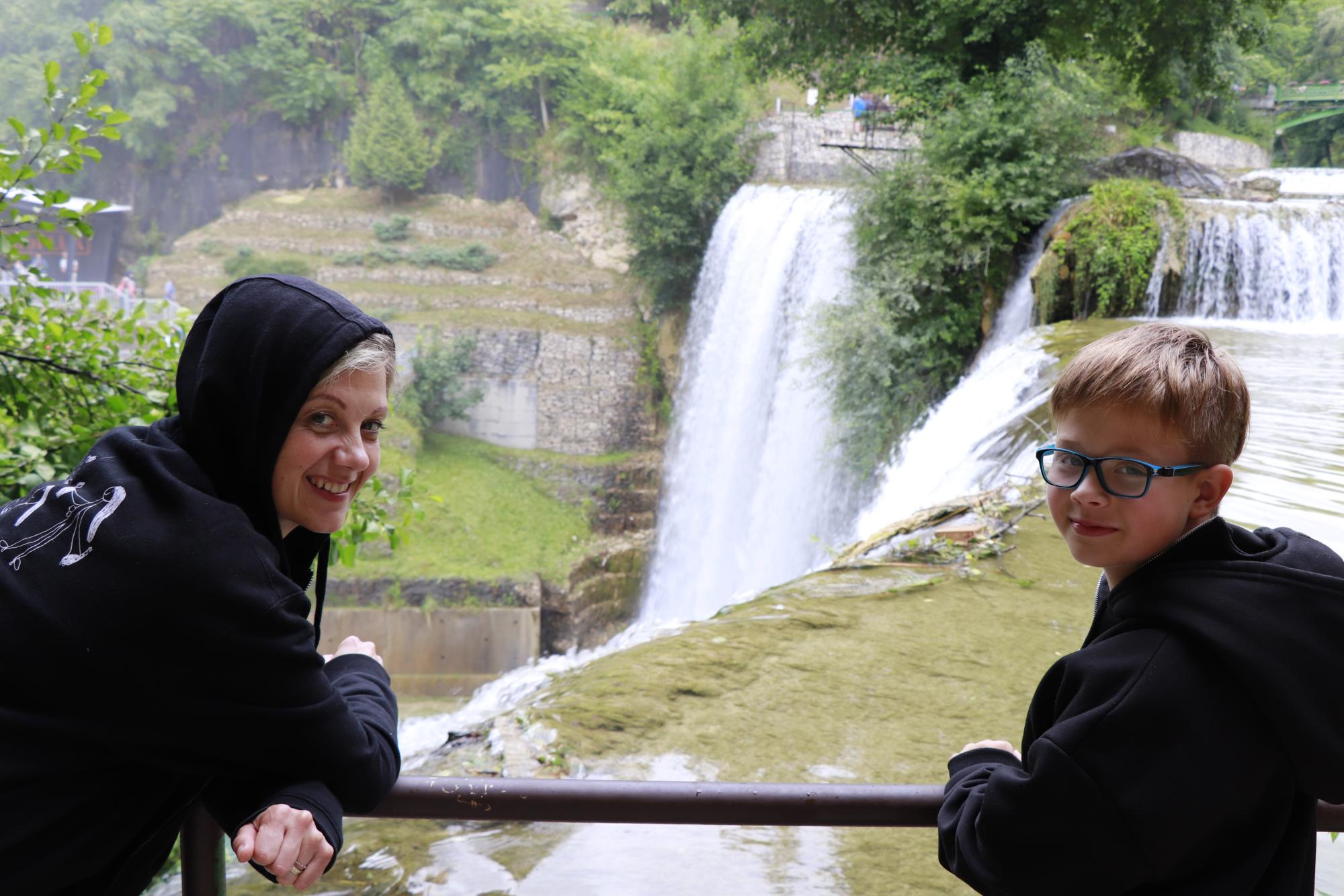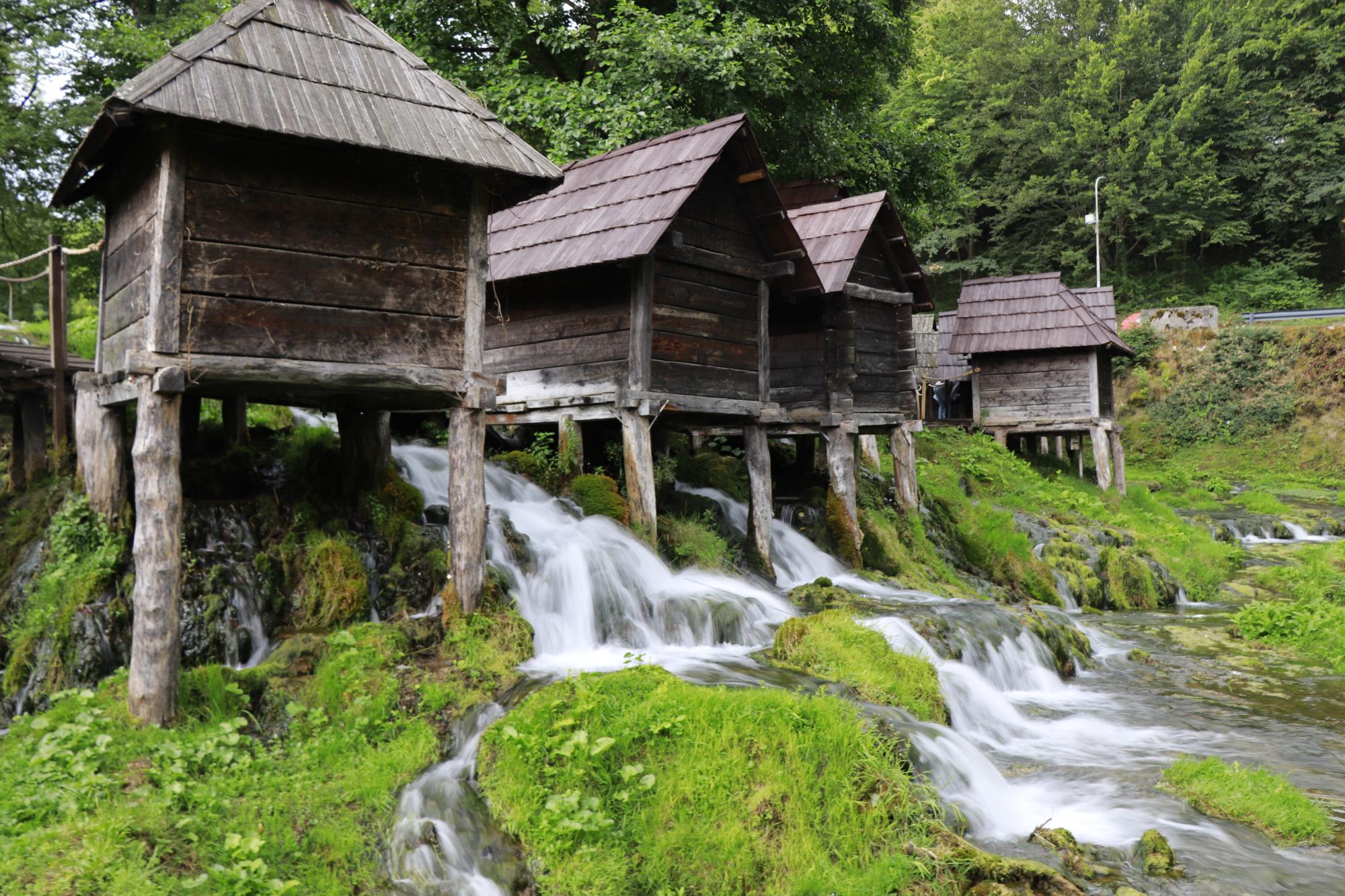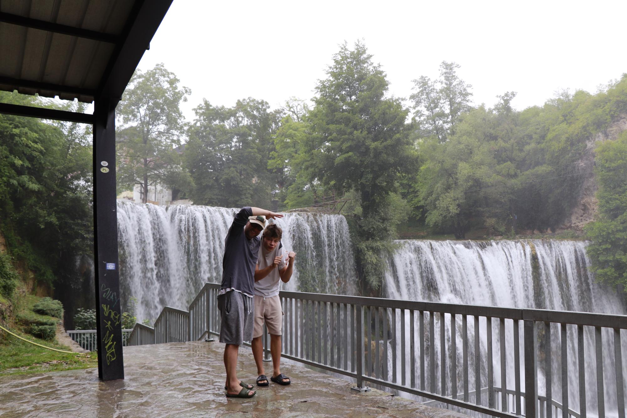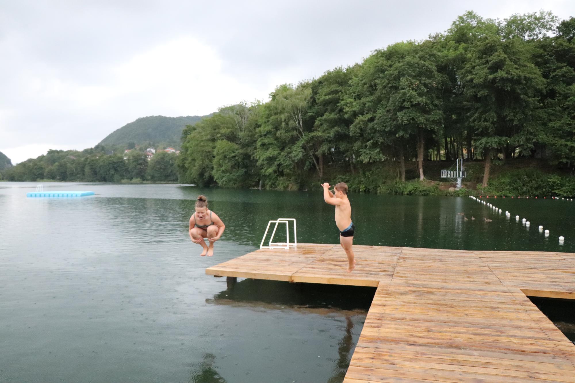 2. den. Přijíždíme do Jajcí a začíná lehce pršet. Ze silnice letmo zahlédneme vodopády, dávám blinkr a odpočujeme k nim. Chvíli hledáme místo na zaparkování, ale velký problém to není. Protože jsme ale celý den moc nejedli, ještě než dojdeme k vodopádům, dáváme jídlo. První seznámení s bosenksou kuchyní (tedy krom mě) je jasná volba - Pljeskavica. A u všech má úspěch. Za lehkého deště pak jdeme obdivotvat vodopády. Déšť nám nevadí, alespoň není všude tolik turistů. Je to úžasný pohled, který si vychutnáváme z více míst. Děláme spoustu fotek a nasáváme atmosféru a energii. Poté se jedeme ubytovat do osvědčeného kempu nad městem nahoru proti porudu řeky Plivy. Kemp je poloprázdný, a tak si vybíráme pěkné místo, kde půjde snadno vedle auta postavit stan nebo ulehnout pod širákem. Plán je totiž takový, že žena, Eliška a Filip spí v autě, já a Denis venku. Počasí nám ale lehze změní plány, to ale až za chvíli. Nyní se jdeme podívat na historickou památku, vodní mlýny, které jsou staré zhruba 500 let. Děti ale více zaujme přírodní koupaliště hned pod mlýny, ve které řádí i za přidávajícího deště. Ten stále sílí a nakonec nás uvězní pod přístřeškem občerstvení asi na 2 hodiny. Z okolní zatravněné plochy se postupně stává jezero a vypadá to, že tu zůstaneme uvězněni do rána. Nakonec déšť poleví, půjčujeme se místní slunečník, pod kterým se dostáváme do kempu. Stále prší a vše je totálně podmáčené, noc pak trávíme všichni v autě, což je zatěžkávací nejen pro náš miniautobus, ale i pro všechny z nás.