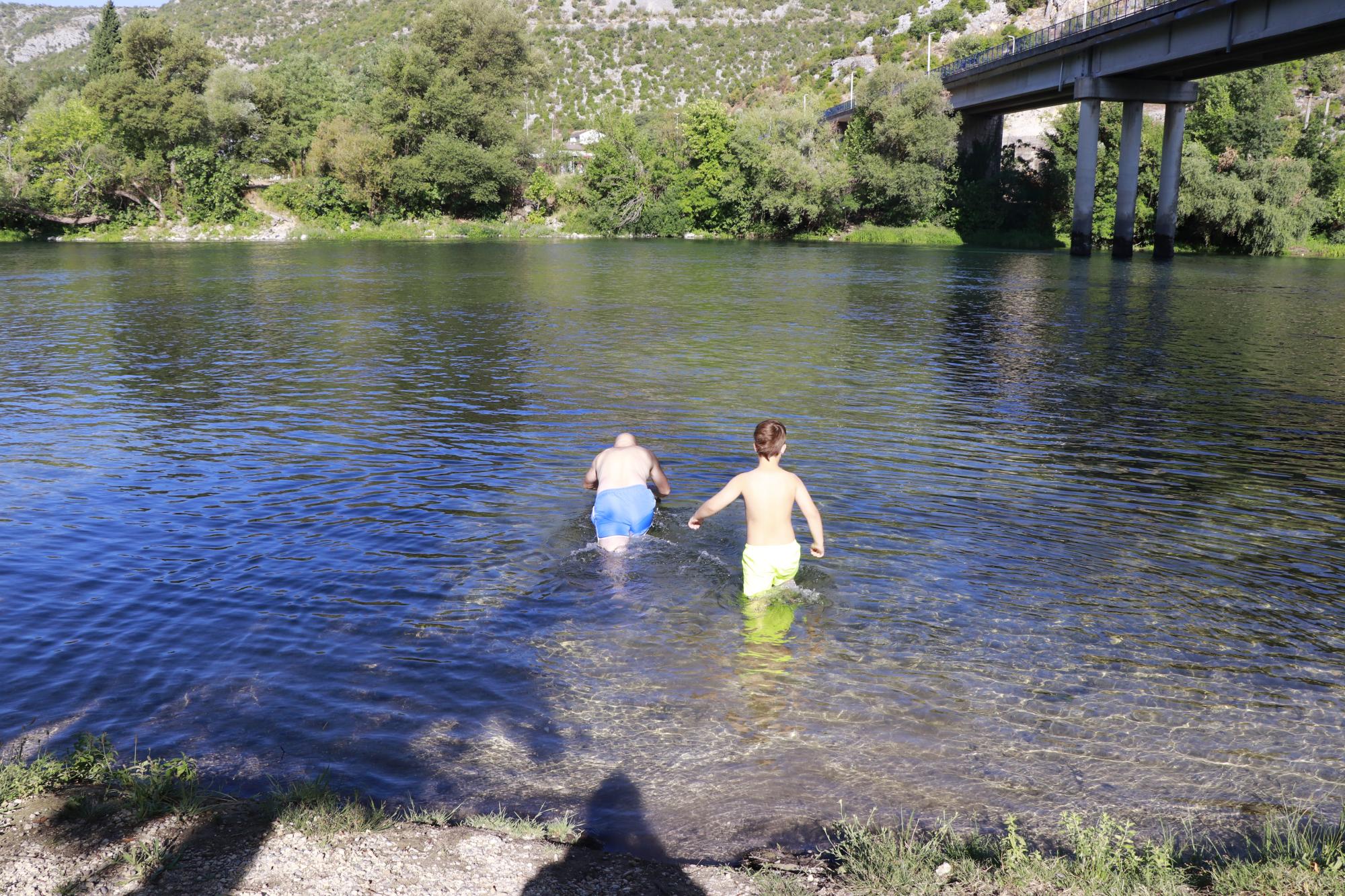 3. den. Probouzíme se do krásného slunečného rána. Noc jsme zvládli a alespoň nemusíme balit stan. Dneska nás čeká další historický skvost, město Mostar. Jedeme vnitrozemím a hltáme nádherné výhledy, nejvíce pak od Jablanice do Mostaru podél řeky Neretvy. Do mostaru přijíždíme v odpoledních hodinách a stále nás provází krásné počasí. Doprava houstne a stejně tak davy turistů mířících do historické části přes Stari most, který i přes své téměř úplné zničení zůstává úchvatnou dominantou města. Procházíme úzké uličky, ochutnáme některé místní speciality a děti vybírají první suvenýry. Sledujeme místní kaskadéry, kteří skáčí z mostu do řeky Neretvy. Samozřejmě až ve chvíli, kdy od turistů vyberou dostatečnou odměnu. Z Mostaru míříme do pár desítek kilometrů vzdáleného kempu Green Park, kde dáváme zasloužený odpočinek, večeři a já s Filipem ještě koupání v Neretvě.