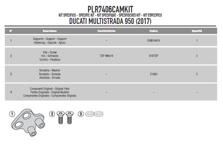 Detailní popis PLR7406CAMKIT montážní sada pro Ducati Multistrada 950 (17-18) pro hnosič PLR 7406CAM