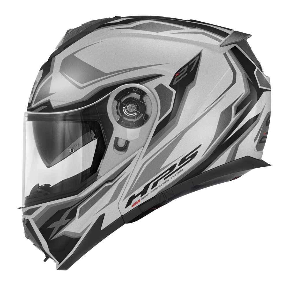 Integrální přilba se sluneční clonou a odklápěcí čelistí. Přilba je homologována jako integrální i jako Jet = můžete jezdit s nahoru vyklopenou čelistí. Materiál - polykarbonát STC, hmotnost - 1 590 gr. - 6 velikostí XS-XS-S-M-L-XL-XXL, výstelka - antialergická, výměnná, prací. Plexi čiré tvrzené s přípravou na Pinlock (přídavná vložka/plexi PINLOCK proti zamlžování je součástí dodávky přilby), samostatně ovládaná sluneční clona. Model X.27 SECTOR. Homologace ECE22R06.