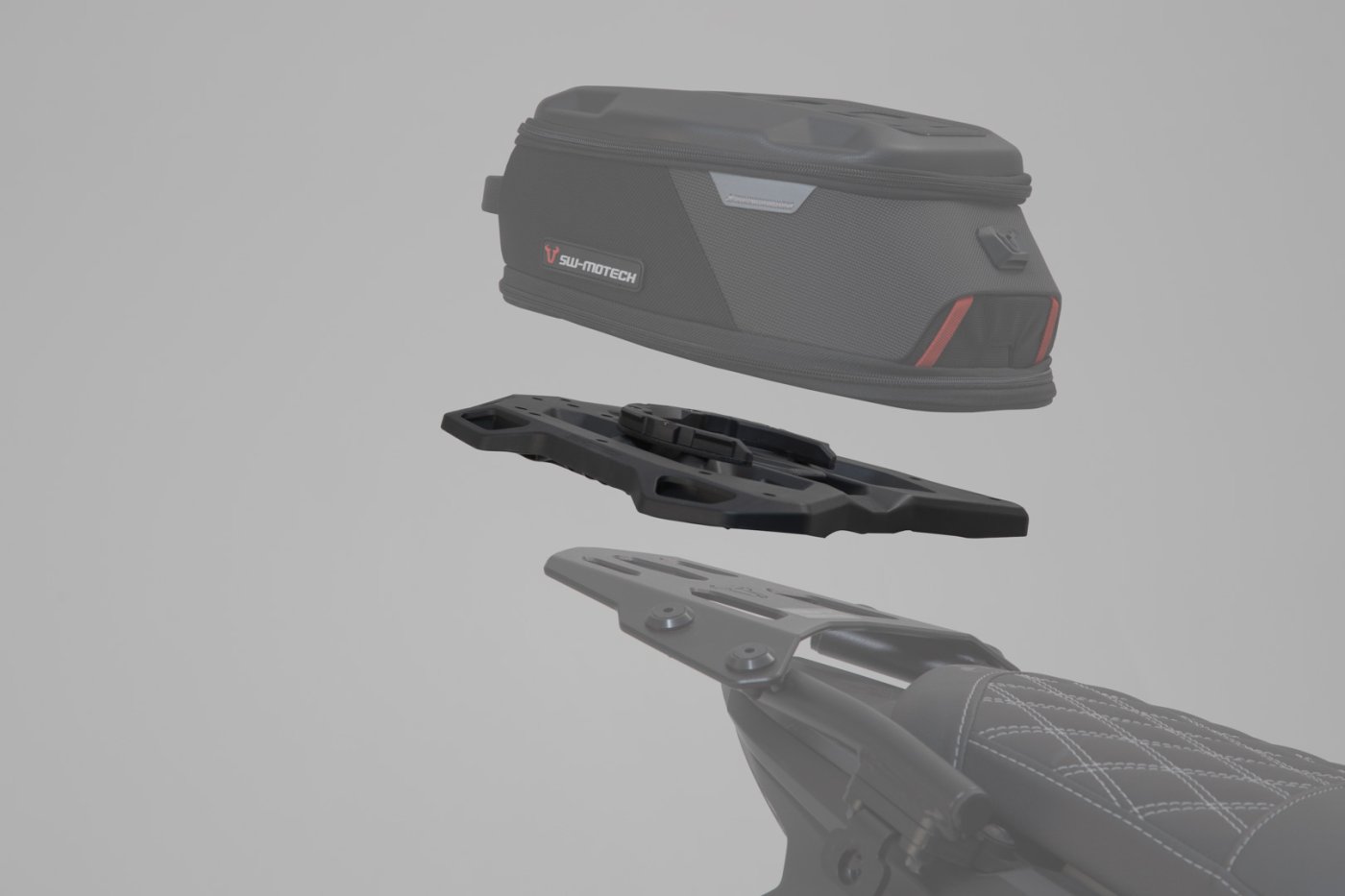 Ať už na ulicích nebo v terénu: s kroužkem pro nádrž PRO pro STREET-RACK lze sáčky na nádrže PRO rychle a bezpečně připevnit k ocasu. Kroužek nádrže PRO je připevněn k desce adaptéru pomocí čtyř šroubů a umožňuje přichycení vaků nádrže PRO s vodorovným dnem.