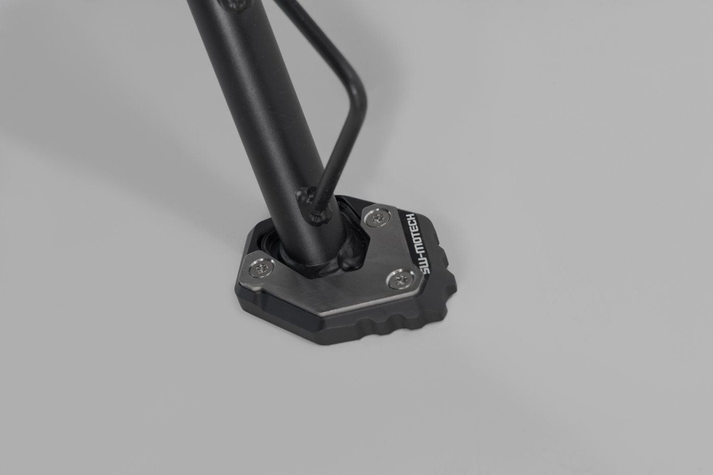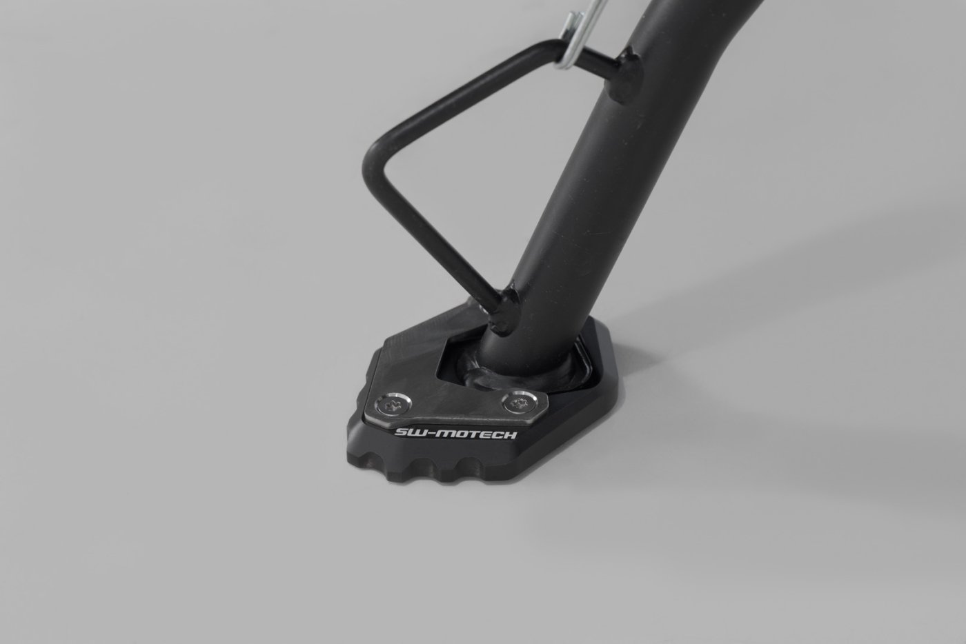 Toto odolné prodloužení chodidla má velkou kontaktní plochu pro zvýšenou stabilitu, a to i na nerovném povrchu a měkké půdě. Při vývoji nových produktů je naší prioritou precizní střih a snadné použití při každodenní jízdě. Profilovaná horní část nástavce nohou usnadňuje vyklopení stojanu - dokonce i u těžkých bot. Zaručeno nejlepší uchycení a bezpečnější úchop: boční stojan z eloxované hliníkové slitiny a montážní konzola z nerezové oceli jsou frézovány CNC.