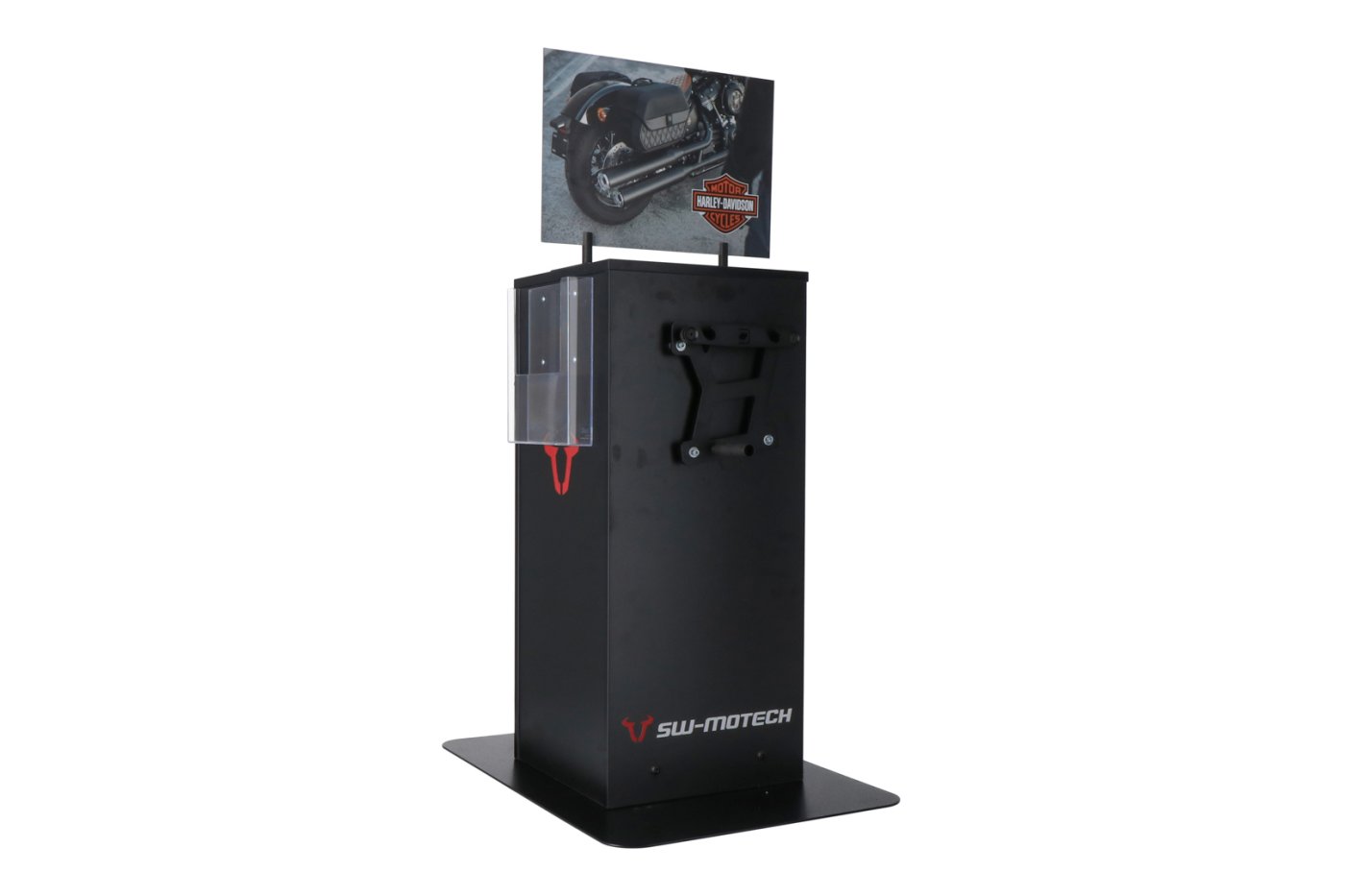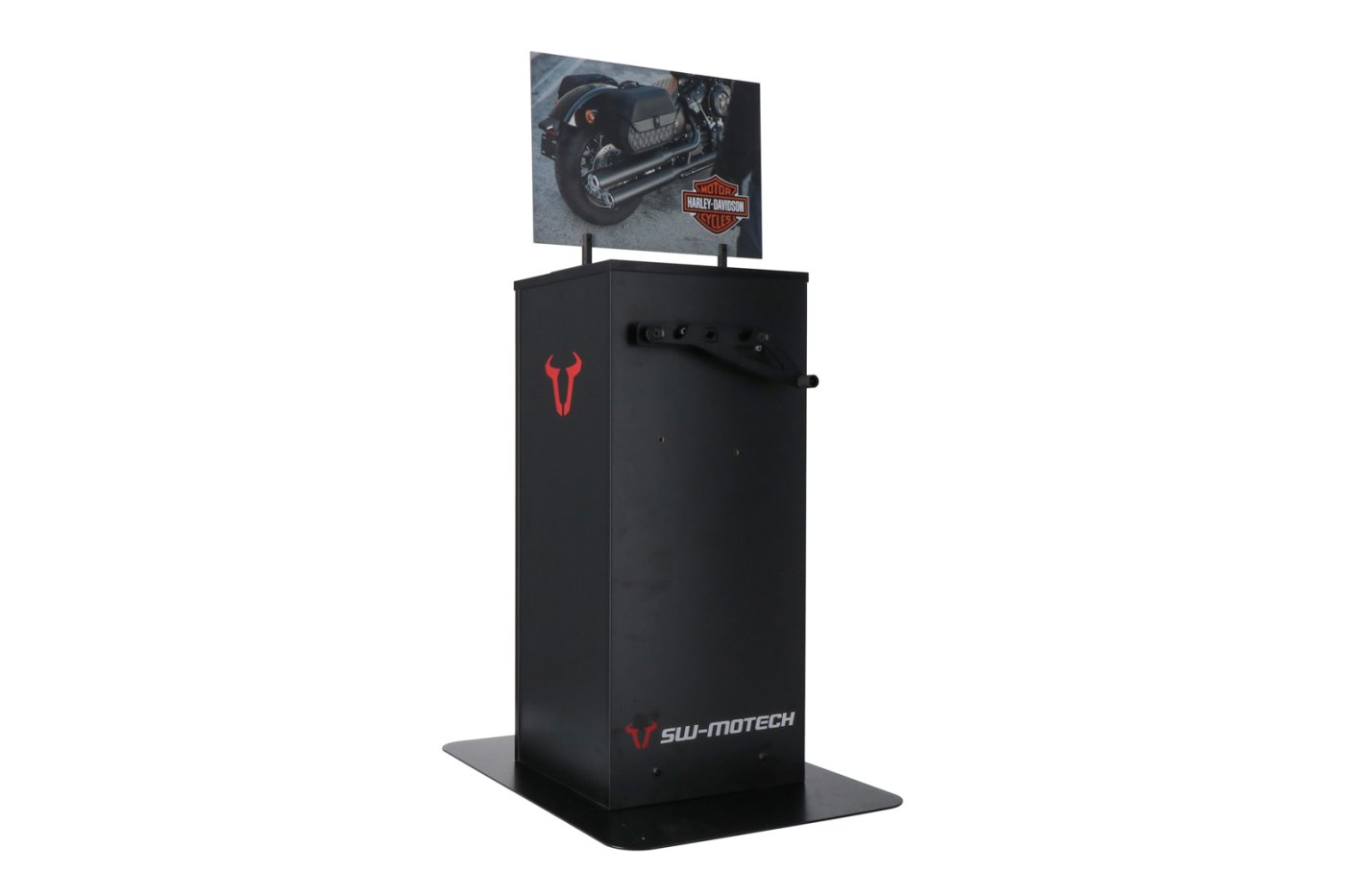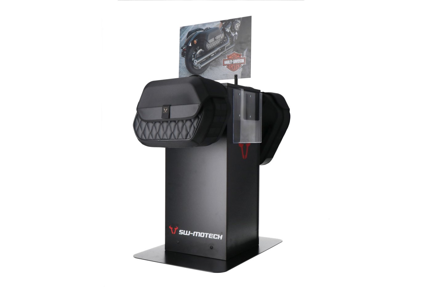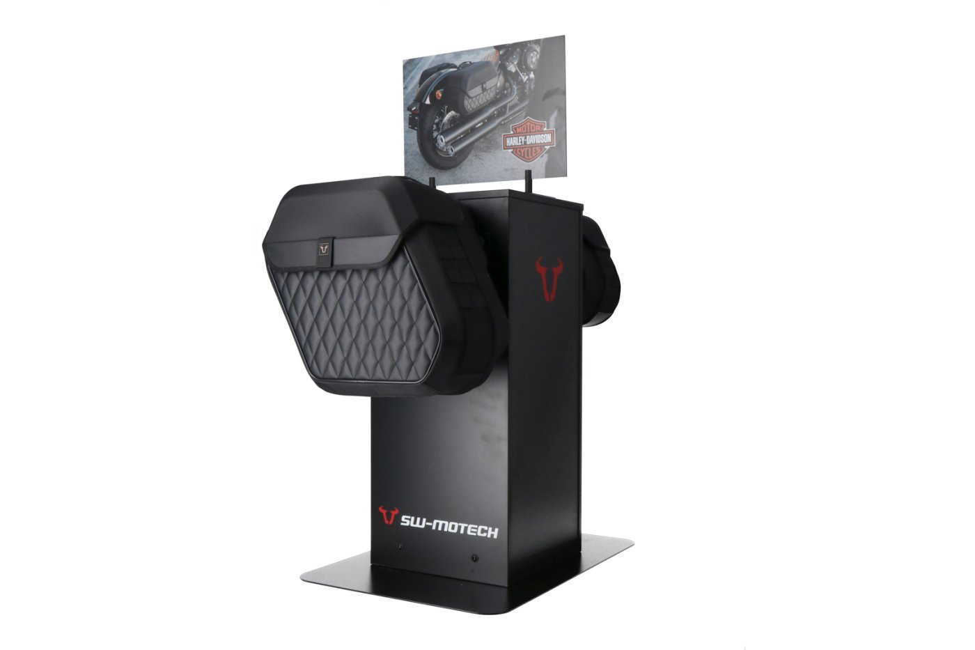 Detailní popis Sales display with mounting Theme: Harley LH side bag and accessories.