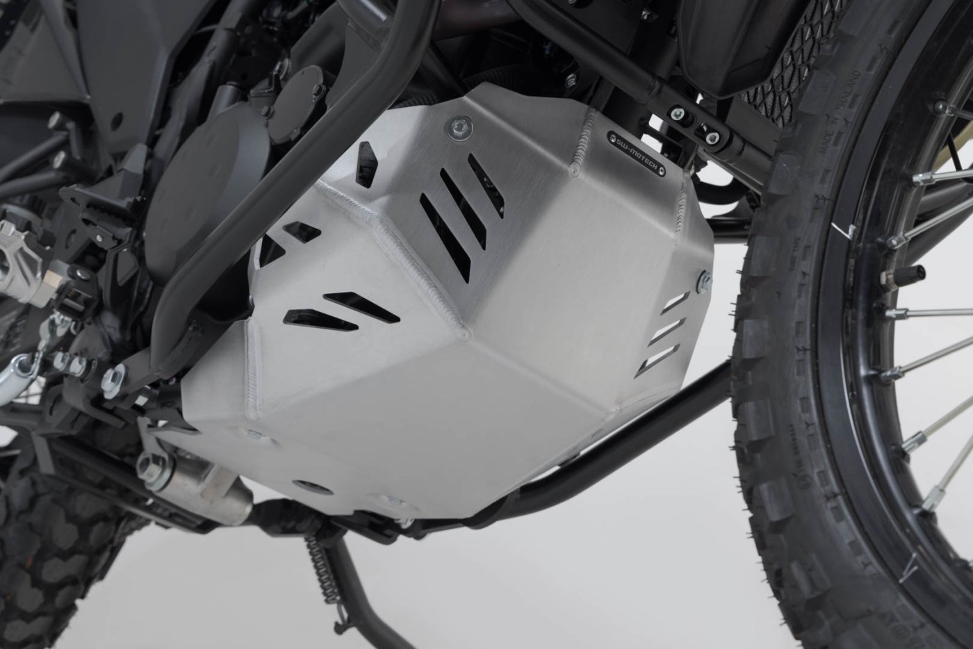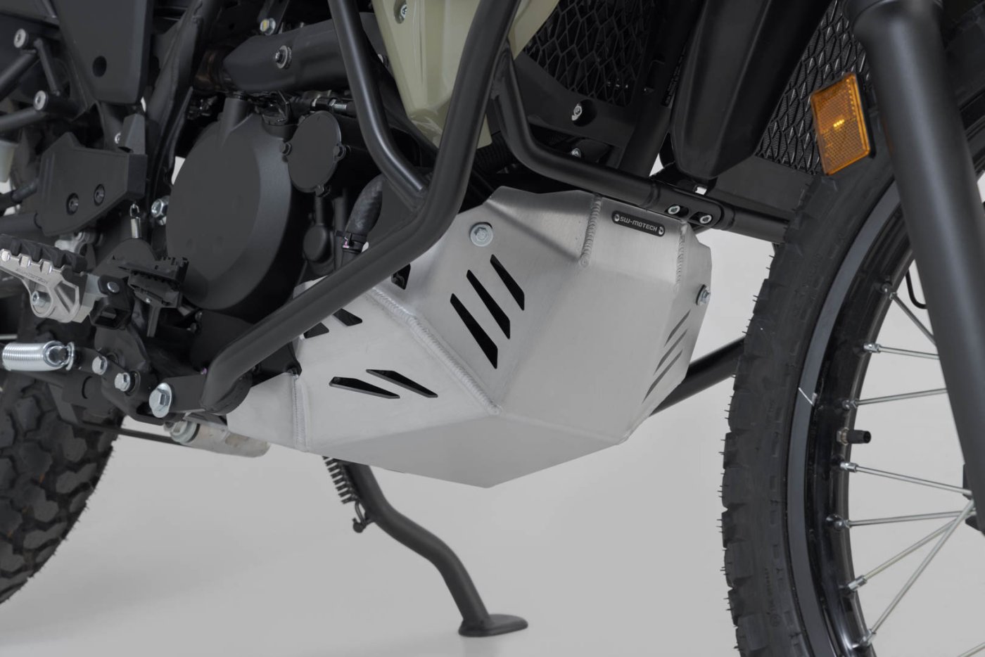 Detailní popis stříbrný kryt motoru. Kawasaki KLR 650 (08-).
