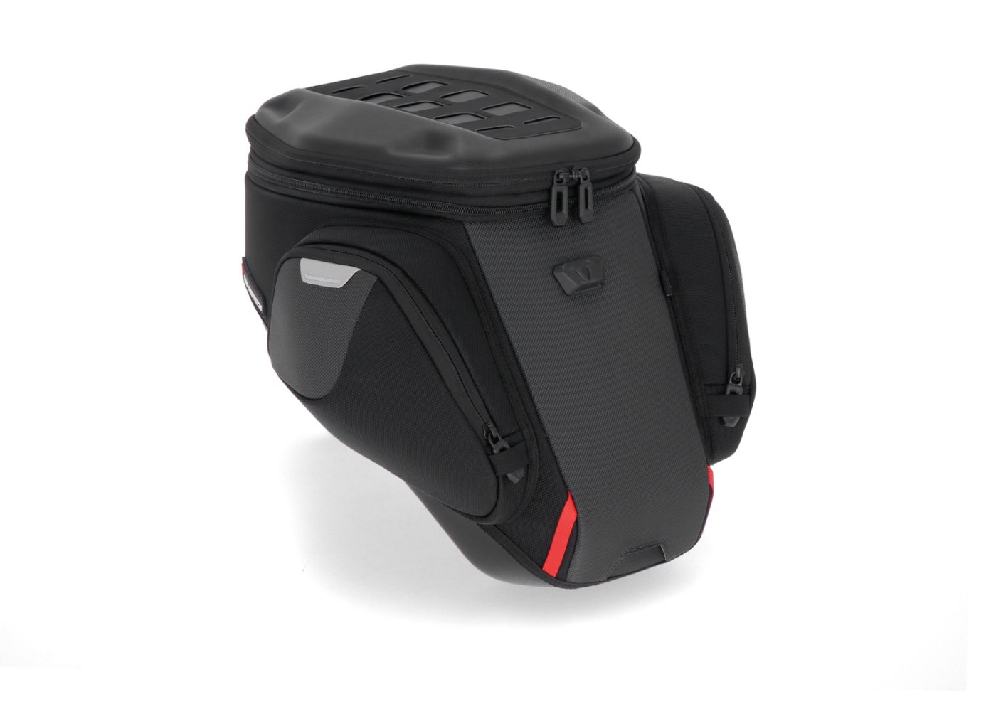 Tankbagy PRO nabízejí elegantní a nadčasový design spolu s odolnými materiály a sofistikovanými vlastnostmi produktu: Balistický nylonový materiál chrání zavazadla před nárazy, větrem a povětrnostními vlivy. Vrchní část z laminovaného materiálu EVA dává taškám výrazný tvar a spolu s nástavcem MOLLE zajišťuje bezpečné uchycení pro držáky chytrých telefonů a tabletů. Vodicí lišta horního kroužku namontovaná z výroby umožňuje, aby se vak na nádrž mnohem snadněji přizpůsobil tvaru nádrže a ergonomickým potřebám řidiče. Tuto flexibilitu nabízejí pouze sáčky NA. SW-MOTECH nabízí patentované kroužky nádrže PRO vyrobené z plastu vyztuženého skelnými vlákny. Jsou vyrobeny tak, aby odpovídaly modelu motocyklu. Robustní kroužek nádrže PRO s magnetickým vodítkem zajišťuje sáčky na nádrž PRO mechanickým zámkem QUICK-LOCK. To umožňuje připevnění nebo vyjmutí sáčků pouze jednou rukou.