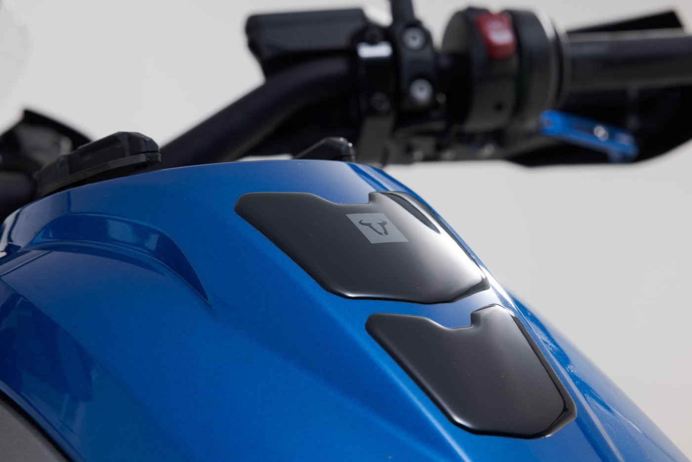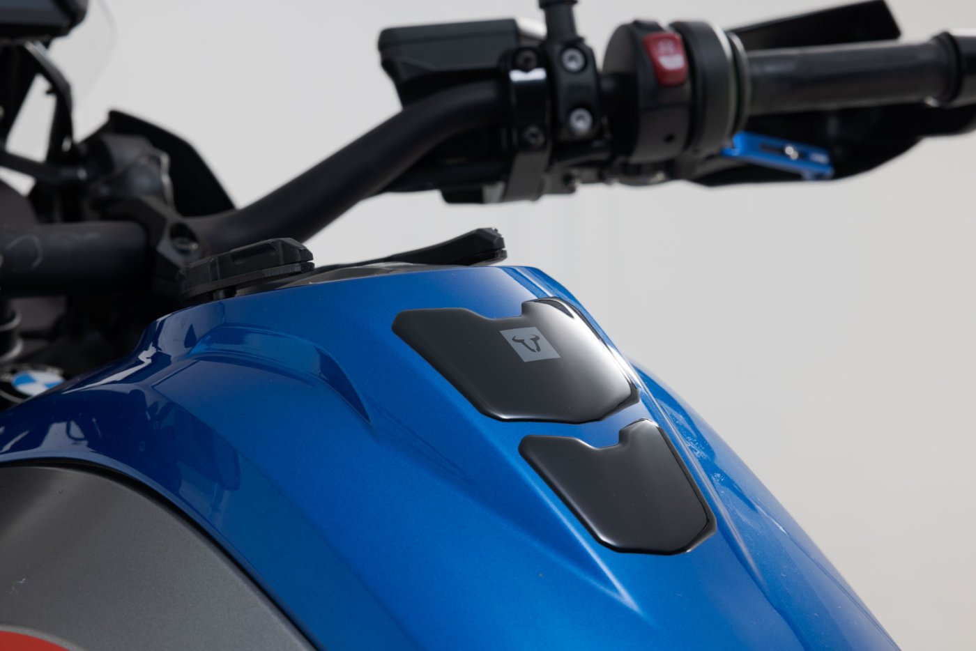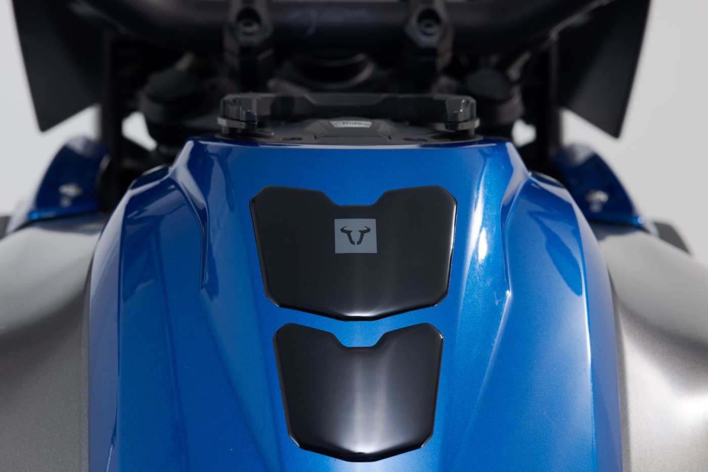 Černý tankpad s šedým logem býka může chránit váš tank před poškrábáním a poškozením. Tankpad můžete nalepit přímo na barvu na nádrži. Je odolný vůči povětrnostním vlivům a UV záření a dodává vašemu kolu individuální vzhled.