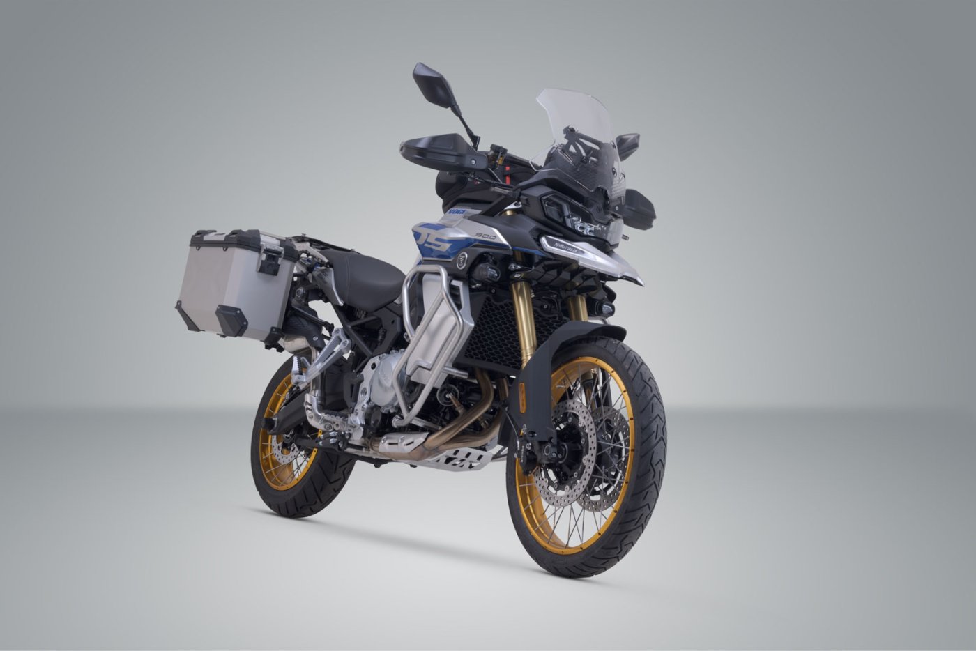 SW-MOTECH vytvořil tento stříbrný hliníkový systém pouzder s extrémně odolnými bočními nosiči PRO specifickými pro jízdní kola, aby odpovídal Voge DS900X.