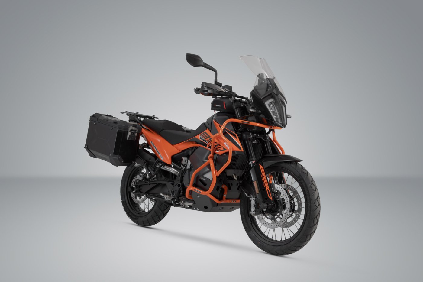 Systém hliníkových kufrů je vyroben společností SW-MOTECH pro modely KTM 790 Adventure a KTM 890 Adventure. Dodává se s extrémně odolnými bočními nosiči PRO pro kola.