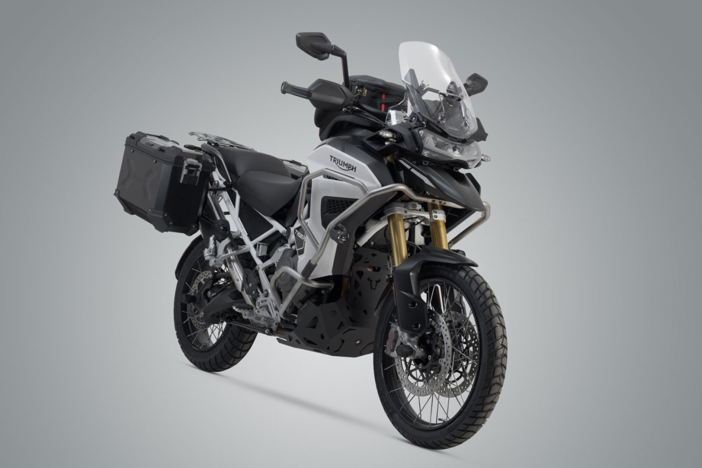 SW-MOTECH vyrobil tento černý hliníkový systém kufru vhodný pro Triumph Tiger 1200 Rally / GT Explorer s použitím extrémně odolných bočních nosičů PRO specifických pro kola.