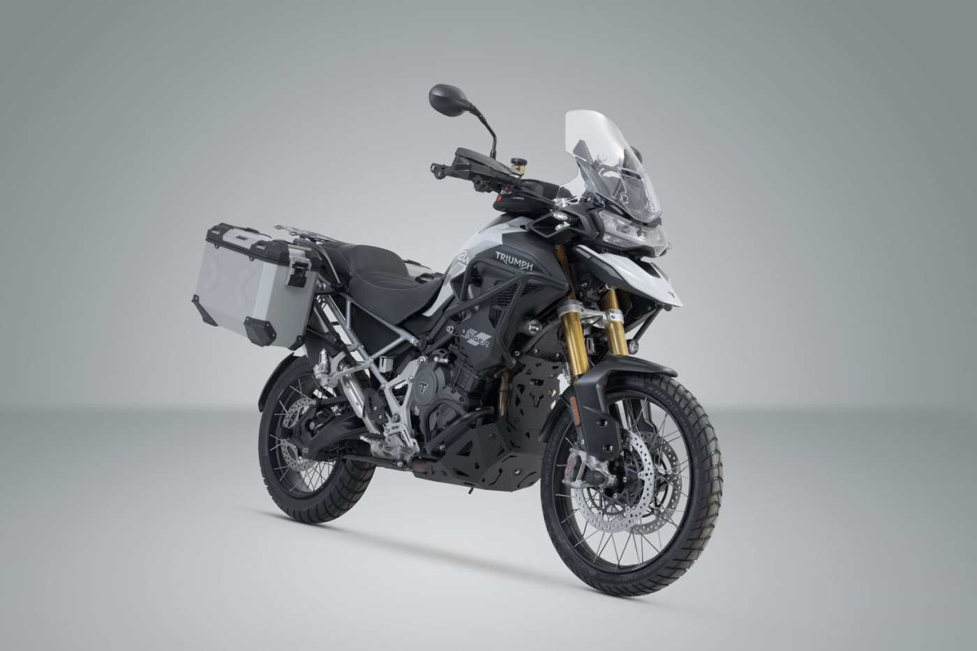 Díky SW-MOTECH je tento stříbrný hliníkový systém kufrů vhodný pro Triumph Tiger 1200, který je vybaven extrémně odolnými bočními nosiči PRO specifické pro kola.