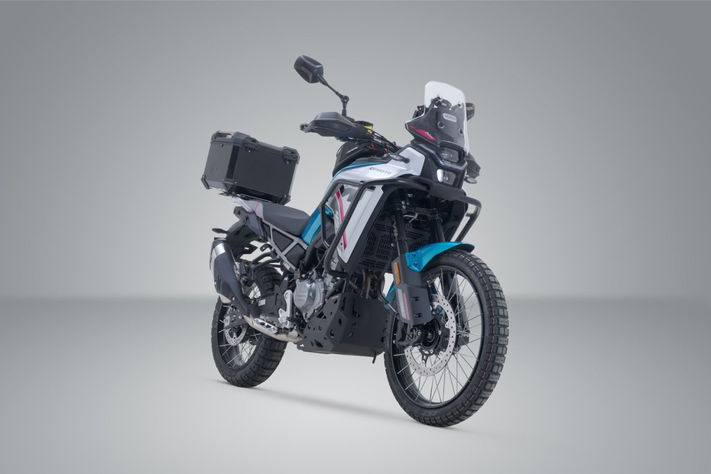 Systém horního kufru TRAX ADV se skládá z robustního černého horního kufru a odpovídajícího ADVENTURE-RACK pro CFMoto 450MT.
