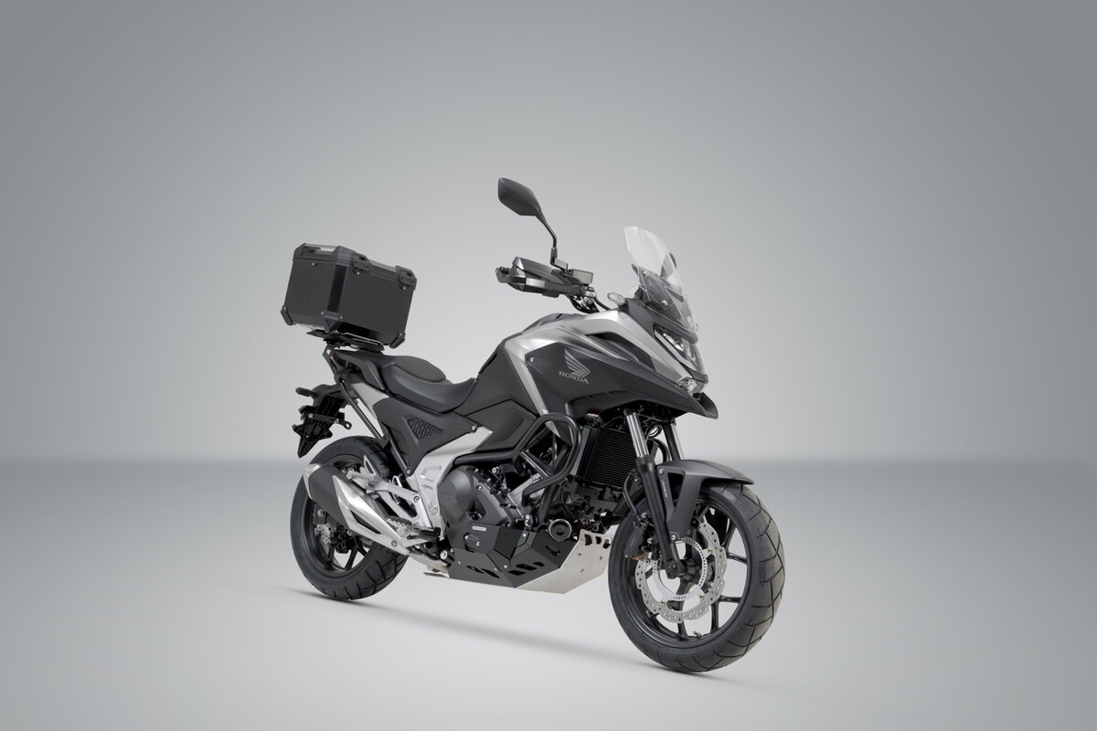 Systém horního kufru TRAX ADV se skládá z robustního stříbrného horního kufru a odpovídajícího STREET-RACK pro Honda NC 750 X.