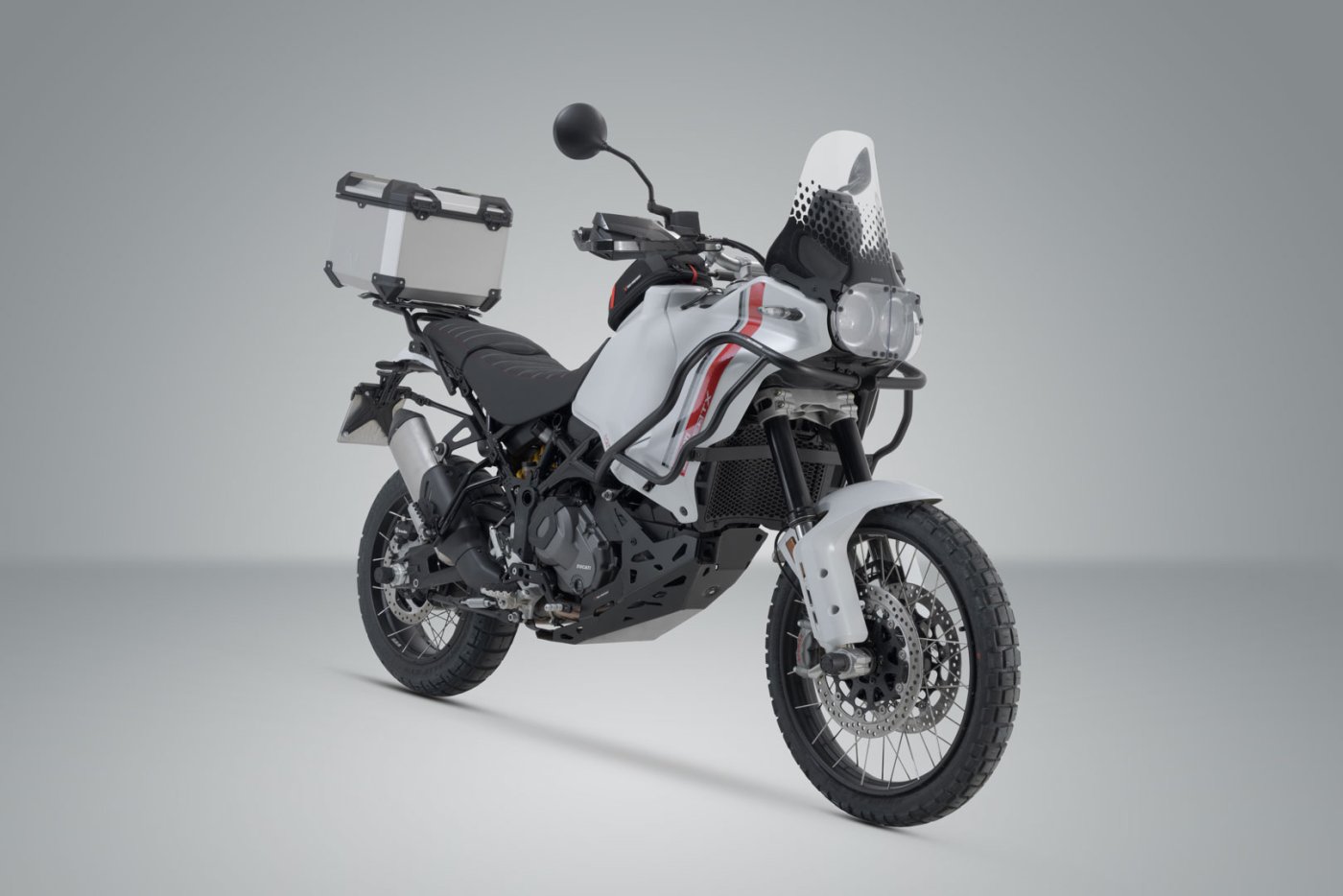 Systém horního kufru TRAX ADV se skládá z robustního stříbrného horního kufru a odpovídajícího ADVENTURE-RACK pro Ducati DesertX.