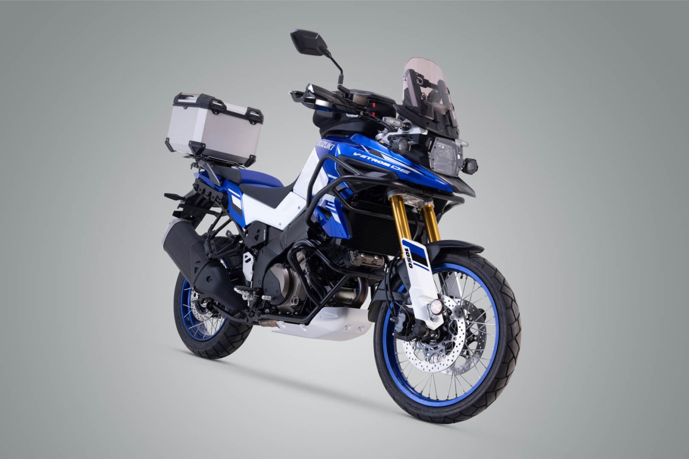 Systém horního kufru TRAX ADV se skládá z robustního stříbrného horního kufru a odpovídajícího ADVENTURE-RACK pro Suzuki V-Strom 650 / 1000 / 1050.