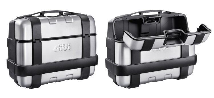 Detailní popis TRK33BPACK2 sada 2 kufrů GIVI TRK 33B Trekker černý s hliníkovým černým víkem (Monokey) se stejným
