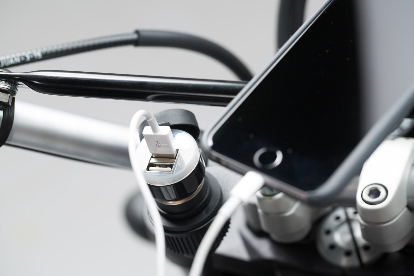 Zásuvka zapalovače cigaret univerzální elektronické sady se připojuje přímo k napájecímu systému motocyklu. Smartphone nebo zařízení GPS můžete nabíjet pomocí přiloženého adaptéru USB. Montážní držák lze připevnit prakticky k libovolným řídítkům pomocí šroubů M8 a M10, které jsou součástí sady. Případně můžete elektrickou zásuvku nainstalovat na kapotáž kola.