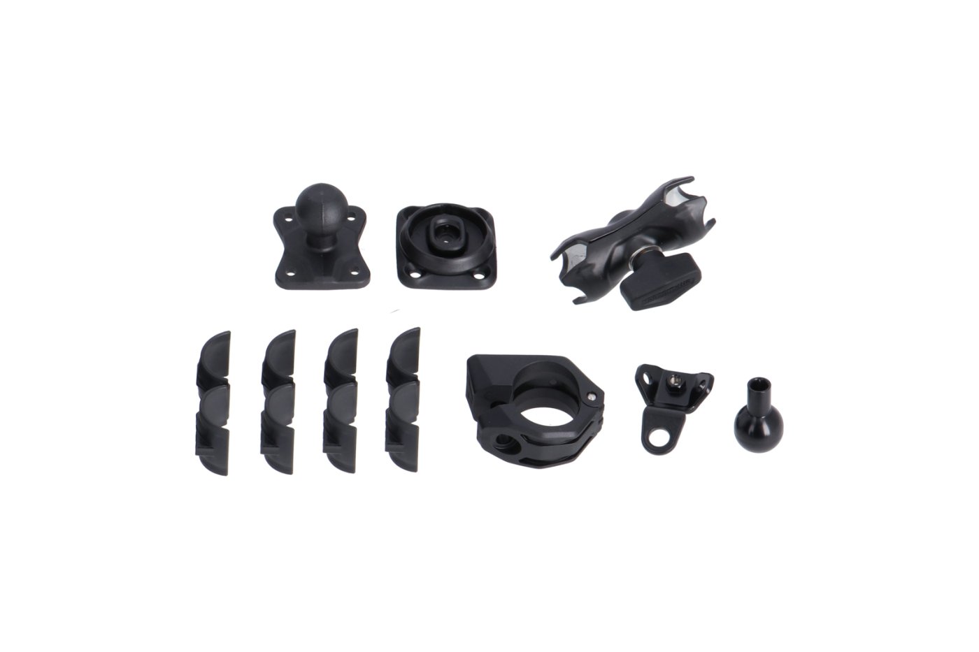 Naše univerzální sada nabízí řadu různých možností montáže na motocyklu: 1palcová kulička může být namontována na závit M6 nebo M8, držák zrcadlového závitu nebo montážní svorku. Montážní svorka je určena pro řídítka o průměru 22,28 mm nebo 1 in. Otočné rameno zásuvky usnadňuje polohování v kokpitu - takže displej zůstává vždy na očích, aniž by bránil sledování přístroje. Držák T-zámku, který je součástí dodávky, umožňuje rychlé připojení tašek na zařízení, jako je pouzdro GPS nebo pouzdro na telefon, k univerzální sadě Navi. Taška může být připevněna k rameni zásuvky jednoduchým čtvrtotočem ve směru hodinových ručiček.