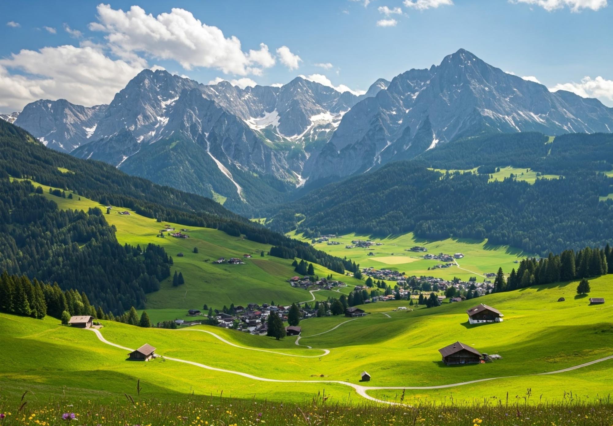 Prozkoumejte rozmanitou krajinu od zasněžených vrcholů Alp po zelené louky a jezera.