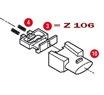 Detailní popis Z106 Zástrčka zámku kufru (slouží ke spojení kufru a nosiče) - poz. 3