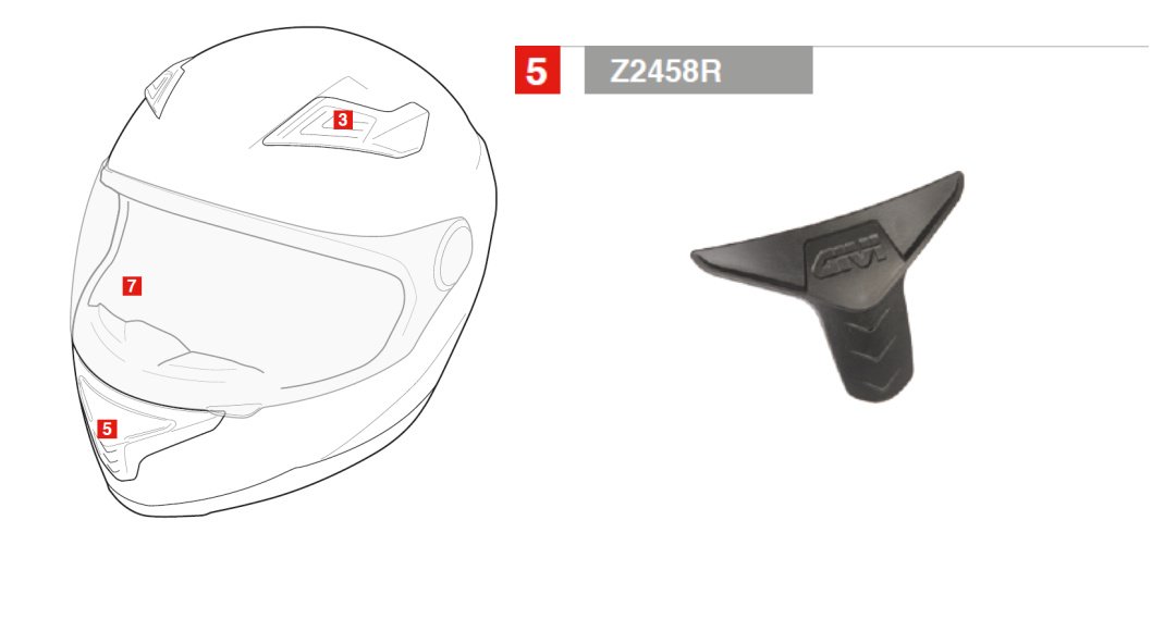 Detailní popis Z2458R přední spodní ventilace pro přilby GIVI 50.4 Sniper